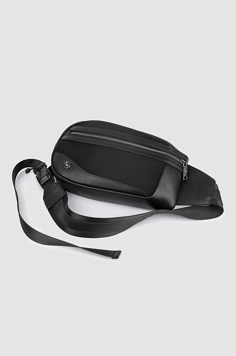 Поясные сумки давно вышли за пределы спортивного стиля и стали универсальным аксессуаром, который носят с повседневной городской одеждой. Черная поясная сумка KANZLER из гладкой натуральной кожи и технологичного текстиля с фирменной нашивкой — не исключение. Это стильный и практичный элемент любого современного образа. В сумке легко поместятся ключи, телефон, кошелек, документы и другие необходимые вещи. Молния по всей длине предоставляет удобный доступ к содержимому. Регулируемый ремень снабжен надежным замком, конструкция которого предотвращает случайное открытие.
