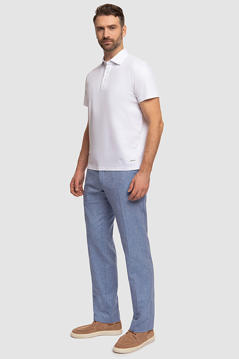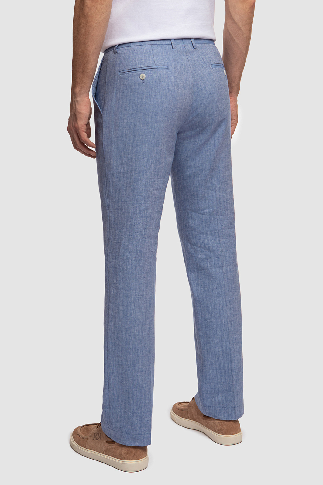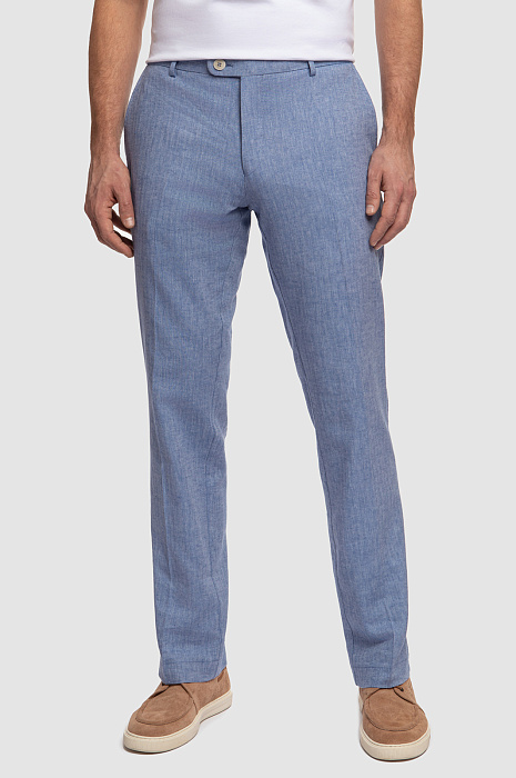 Брюки изо льна и хлопка голубого цвета, цвет голубой, цена 10 990 руб., код 267089 - купить в Нижнем Новгороде в интернет-магазине KANZLER