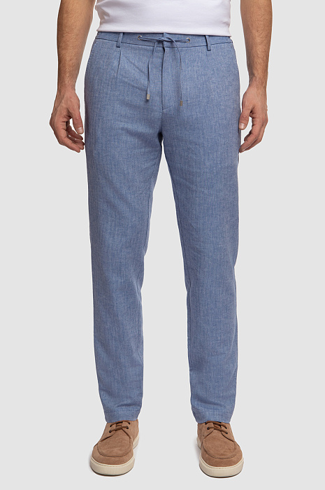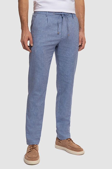 Брюки изо льна и хлопка на кулиске, цвет голубой, цена 10 990 руб., код 267090 - купить в Нижнем Новгороде в интернет-магазине KANZLER
