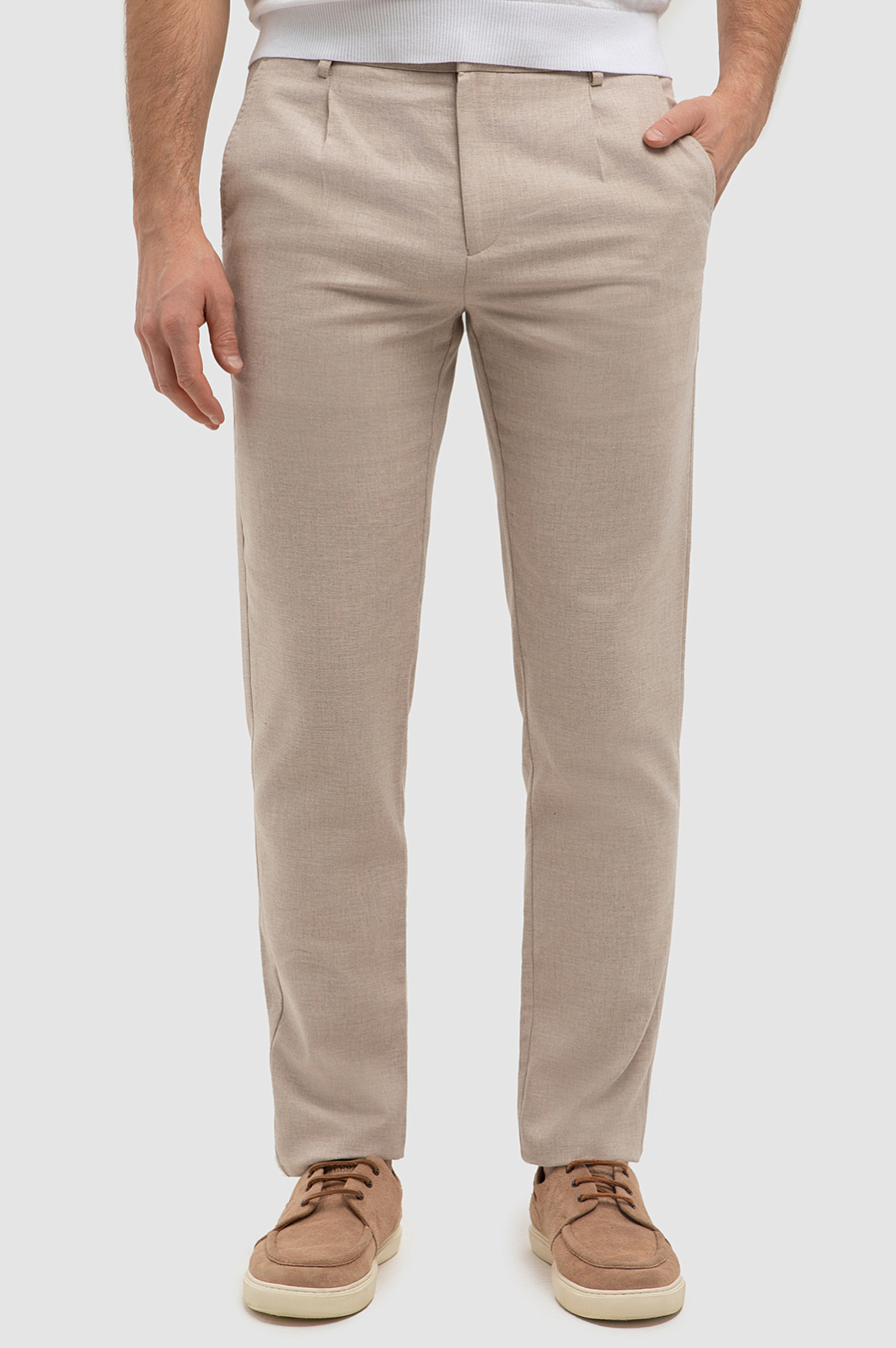 Брюки из хлопка и льна, цвет бежевый, цена 8 054 руб., код 267092 - купить в Нижнем Новгороде в интернет-магазине KANZLER
