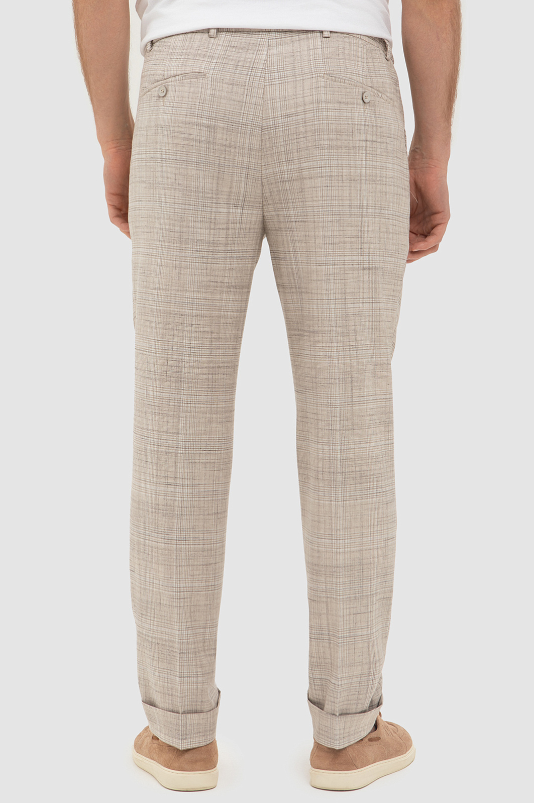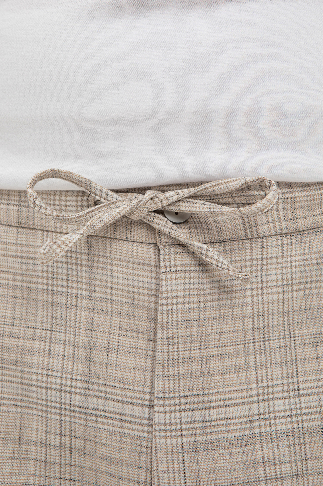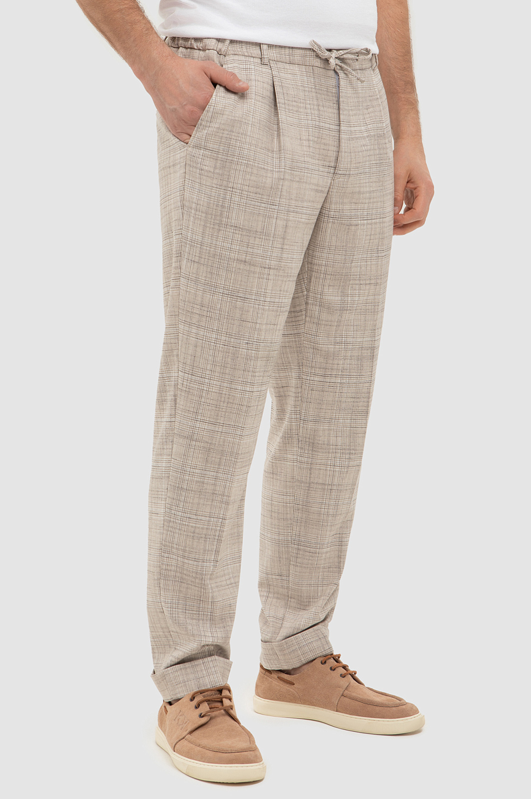 Бежевые брюки на кулиске KANZLER в тонкую клетку — ода средиземноморскому стилю и небрежному расслабленному шику. В одинаковой мере стильная и комфортная вещь вдохновляет проживать каждое мгновение с удовольствием — так, как хочется именно Вам. Отвороты внизу и шнурок на поясе — отсылки к современному городскому стилю. Продуманный состав ткани — союз роскоши, современных технологий и практичности. Волокна льна создают ощущение прохлады даже в жаркий день. Хлопок обеспечивает воздухообмен. Полиэстер и вискоза придают прочность. А эластан (2%) помогает материалу сохранять безупречный вид и форму.