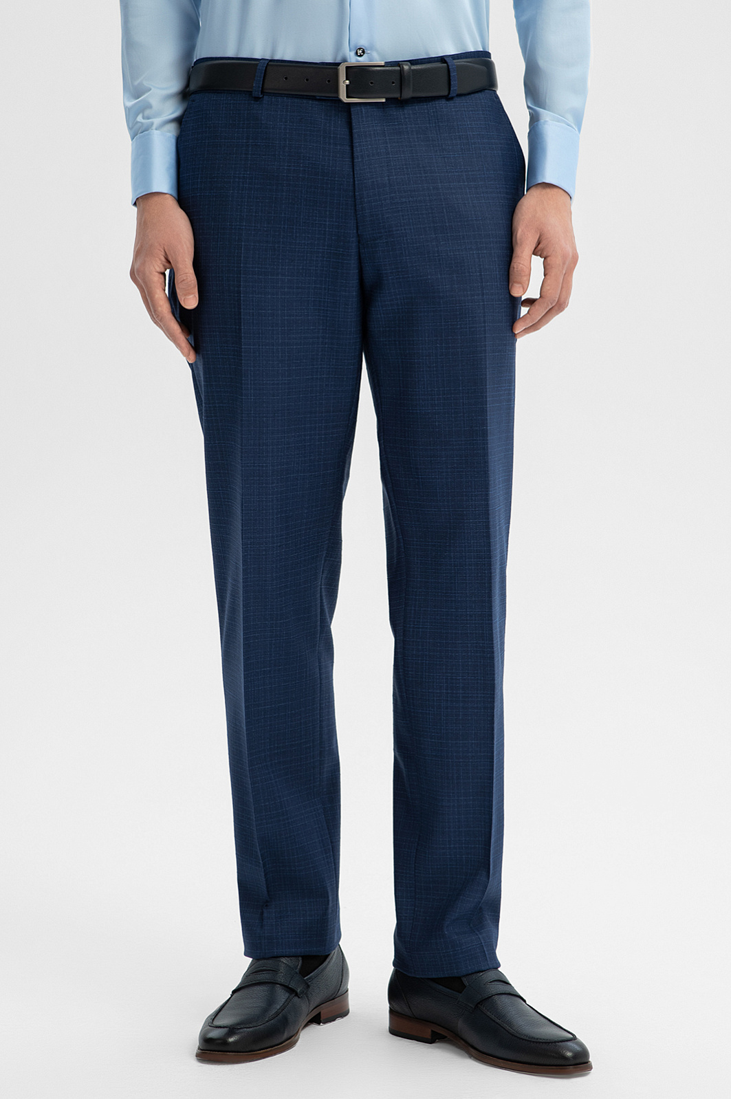 Брюки из шерсти и льна с водоотталкивающей обработкой, цвет синий, цена 14 990 руб., код 268969 - купить в Нижнем Новгороде в интернет-магазине KANZLER