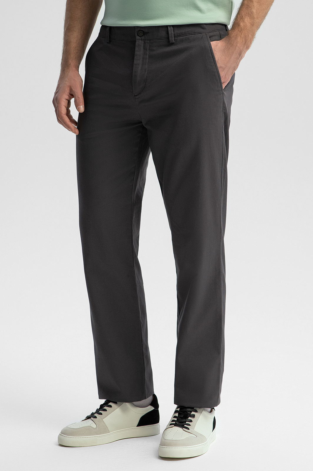 Брюки KANZLER спокойного серо-коричневого оттенка из мягкой хлопковой ткани — удобная и практичная базовая модель, которая подойдет для офиса с нестрогим дресс-кодом, поездок, путешествий и отдыха в городе. Универсальная модель с карманами отлично сочетается с одеждой в спортивном и повседневном стилях. Прямой свободный крой не стесняет движений и подходит для любого типа телосложения. Натуральный гипоаллергенный хлопок защищает тело от перегрева в теплые дни. Небольшая добавка спандекса служит для прочности и поддержания формы ткани. Параметры модели: рост 189, 102-80-99 Размер на модели: 50