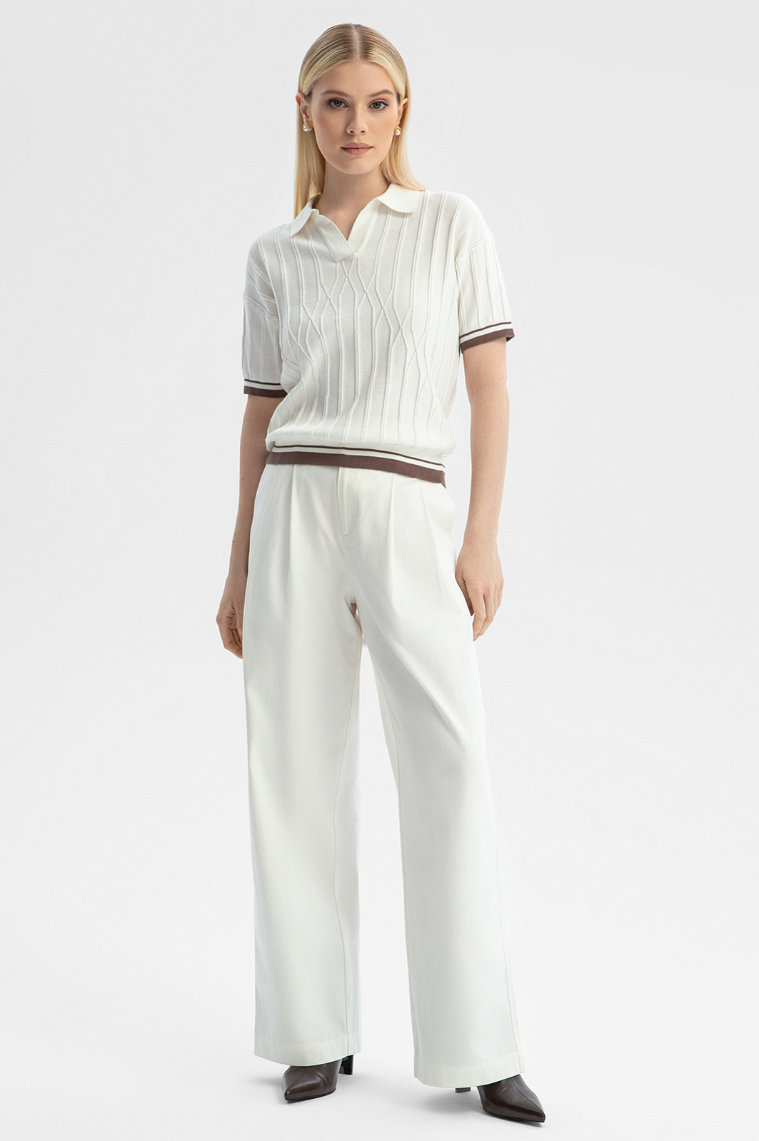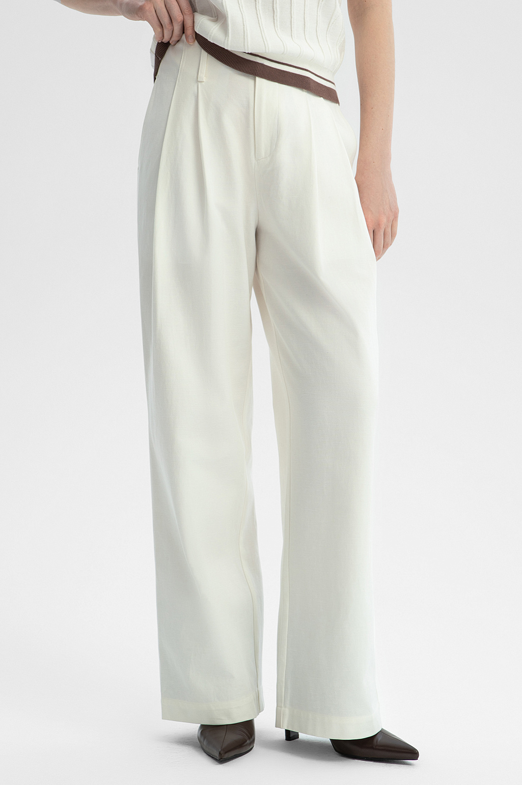 Брюки палаццо из тенсела и хлопка, цвет белый, цена 9 990 руб. - купить в интернет-магазине KANZLER