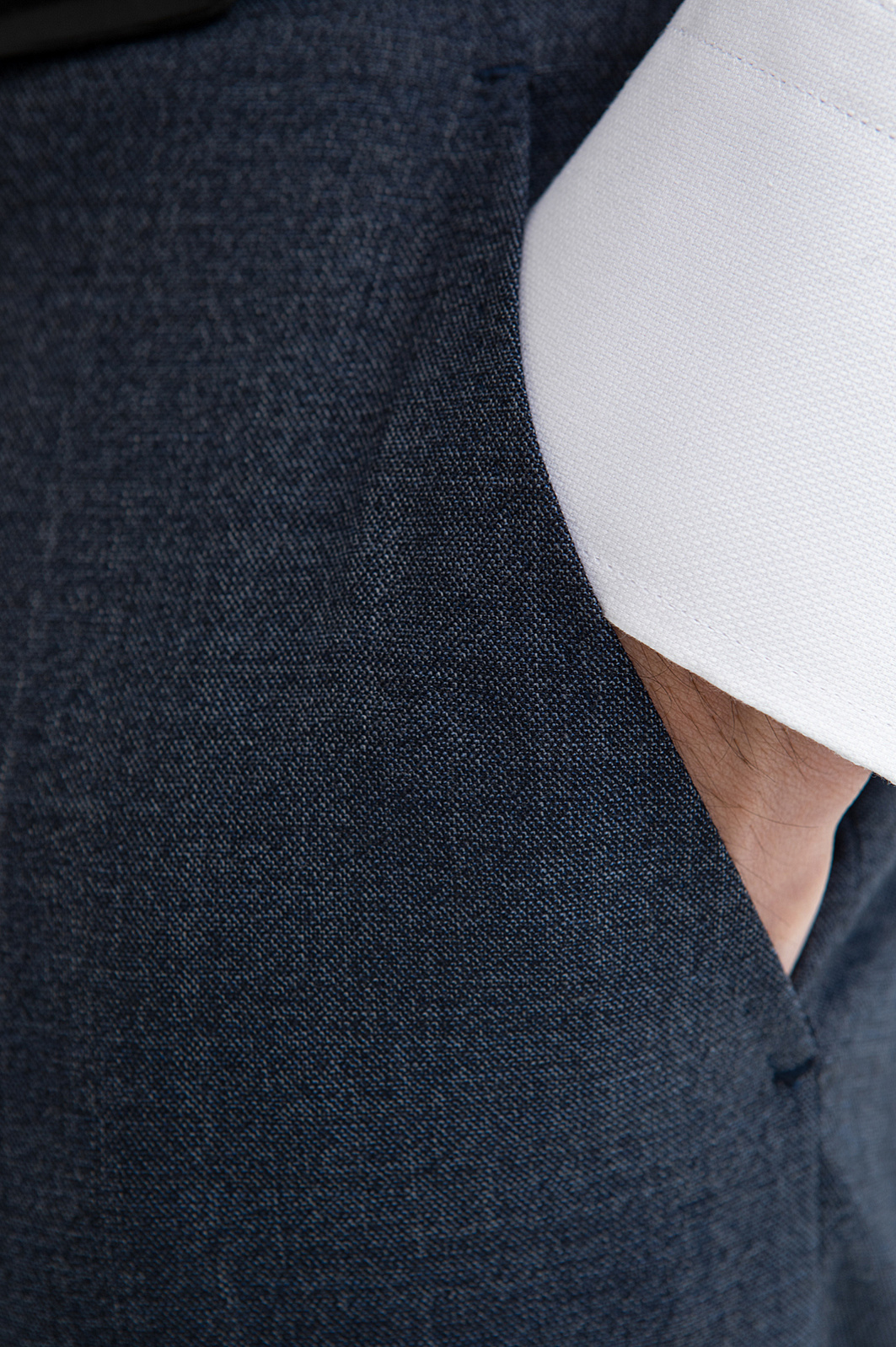Брюки KANZLER из мягкой шерсти мериноса спокойного синего цвета адресованы адептам сдержанной роскоши и безупречного кроя. Если дополнить их пиджаком KANZLER из этой же ткани, получается выверенный и статусный костюм для деловых выходов, в котором каждая деталь работает на образ безупречной мужской элегантности. В более свободных сочетаниях — с сорочкой или тонким трикотажем — брюки подойдут для ужина в ресторане и светских встреч. Слегка зауженный силуэт подчёркивает линию ног, формируя собранный, уверенный образ, а чёткие стрелки придают фигуре стройность. Тонкая костюмная ткань Супер 120S сделана из драгоценной шерсти мериноса. Она приятно облегает тело и сохраняет ощущение комфорта на протяжении всего дня. Водоотталкивающая обработка защищает брюки от капризов погоды и помогает сохранить безупречный вид в поездках и путешествиях.