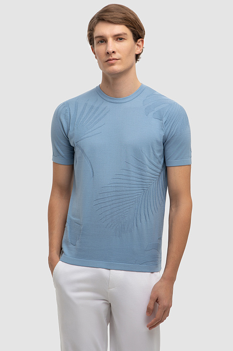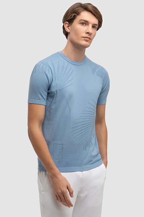 Джемпер с коротким рукавом из хлопка Пима, цвет голубой, цена 4 990 руб., код 267267 - купить в Нижнем Новгороде в интернет-магазине KANZLER