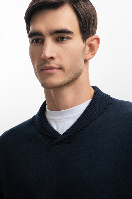 Джемпер из хлопка и кашемира, цвет синий, цена 4 990 руб., код 268430 - купить в Нижнем Новгороде в интернет-магазине KANZLER