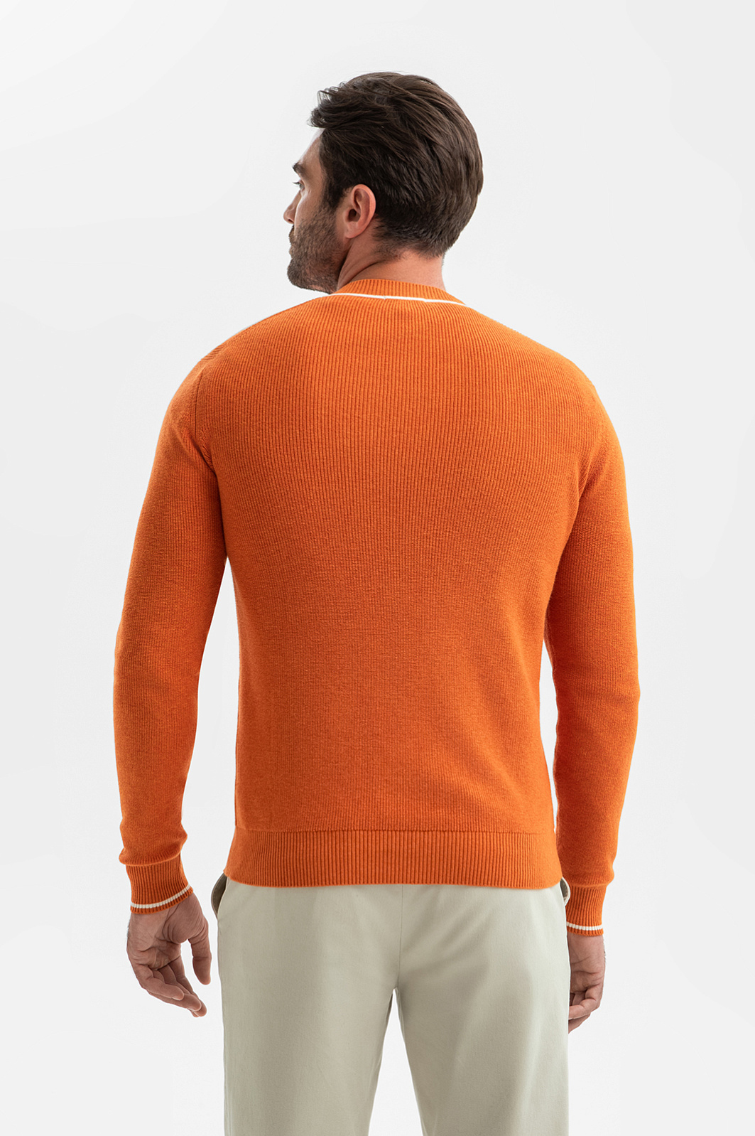 Джемпер KANZLER из хлопка и кашемира с треугольным вырезом – симбиоз делового стиля и кежуал. Мягкий и невесомый материал из натурального хлопка с добавлением кашемира обеспечивает оптимальный воздухообмен и терморегуляцию, устойчив к износу и сохраняет форму и цвет после многократных стирок. Оранжево-коричневый оттенок оживит образ и будет гармонично сочетаться с теплой гаммой. Крой подчеркивает мужественный силуэт, не ограничивая свободу движения. Модель подходит для создания многослойных образов с рубашкой или футболкой. Параметры модели: рост 192, 108-83-102 Размер на модели: M