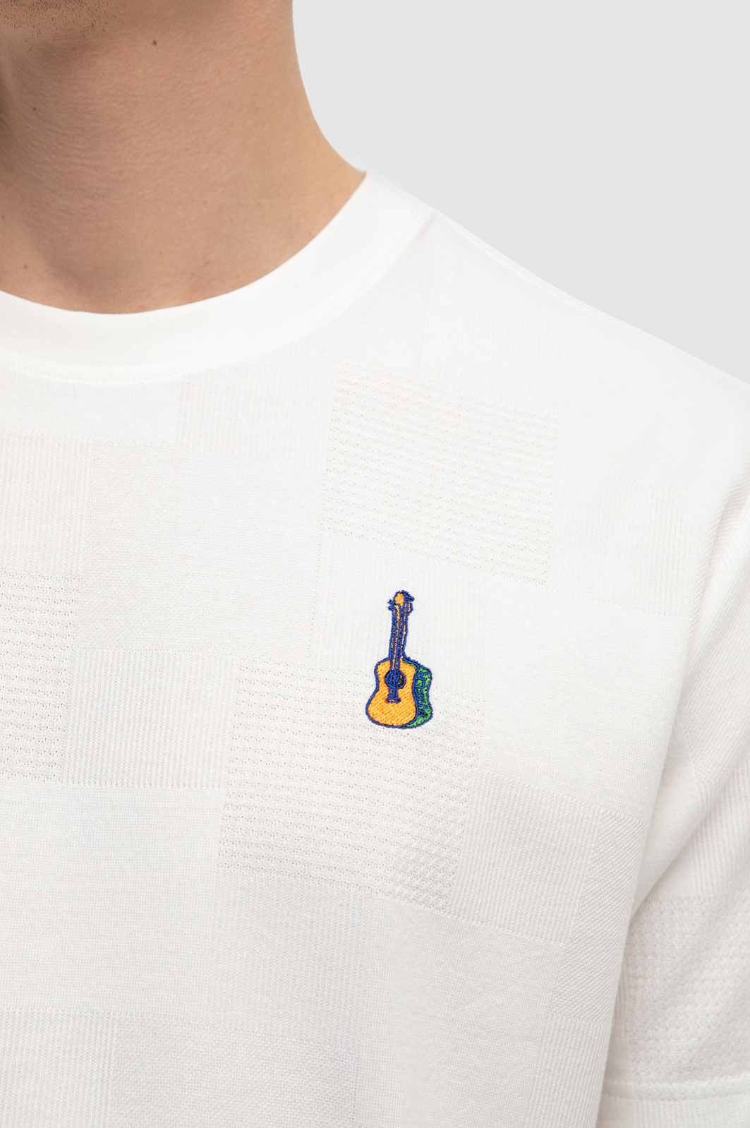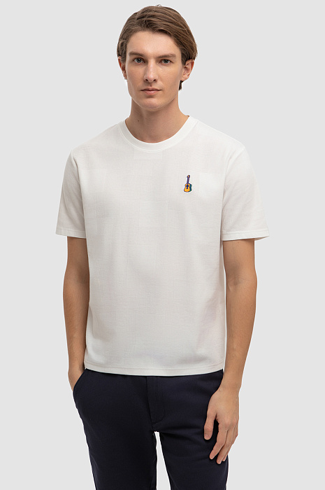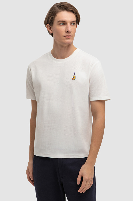 Дизайнеры украсили белую футболку KANZLER с круглым вырезом из 100-процентного текстурного хлопка вышитой гитарой. Небольшой символ призван рассказать окружающим о любви к музыке. Футболка незаменима на отдыхе — для неспешных прогулок, встреч, опенэйров и пляжный вечеринок. Мягкий рельефный трикотаж не ограничивает свободу движений. Превосходный чистый хлопок создает барьер для зноя и прохлады. Гипоаллергенные волокна хорошо пропускают воздух, поддерживают приятную для тела температуру и отводят влагу.