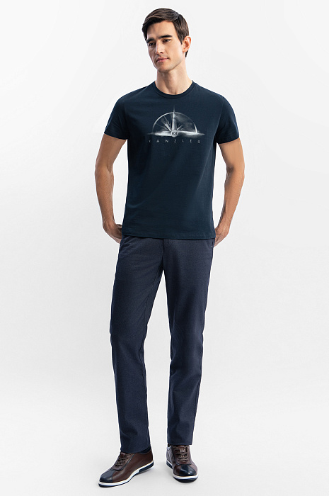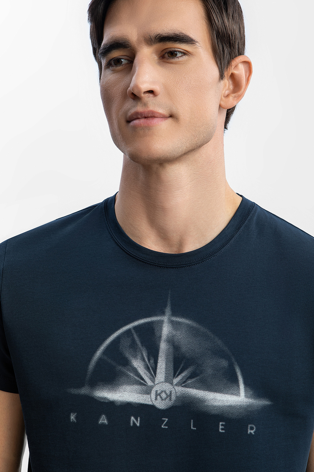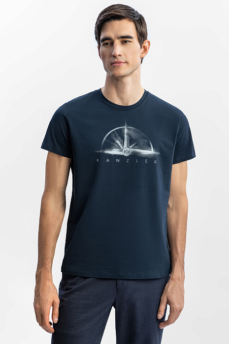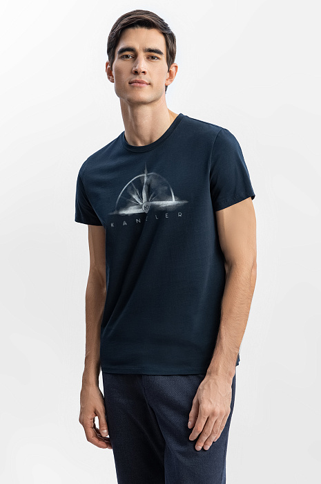 Футболка из хлопка с принтом, цвет синий, цена 1 990 руб., код 268200 - купить в Нижнем Новгороде в интернет-магазине KANZLER