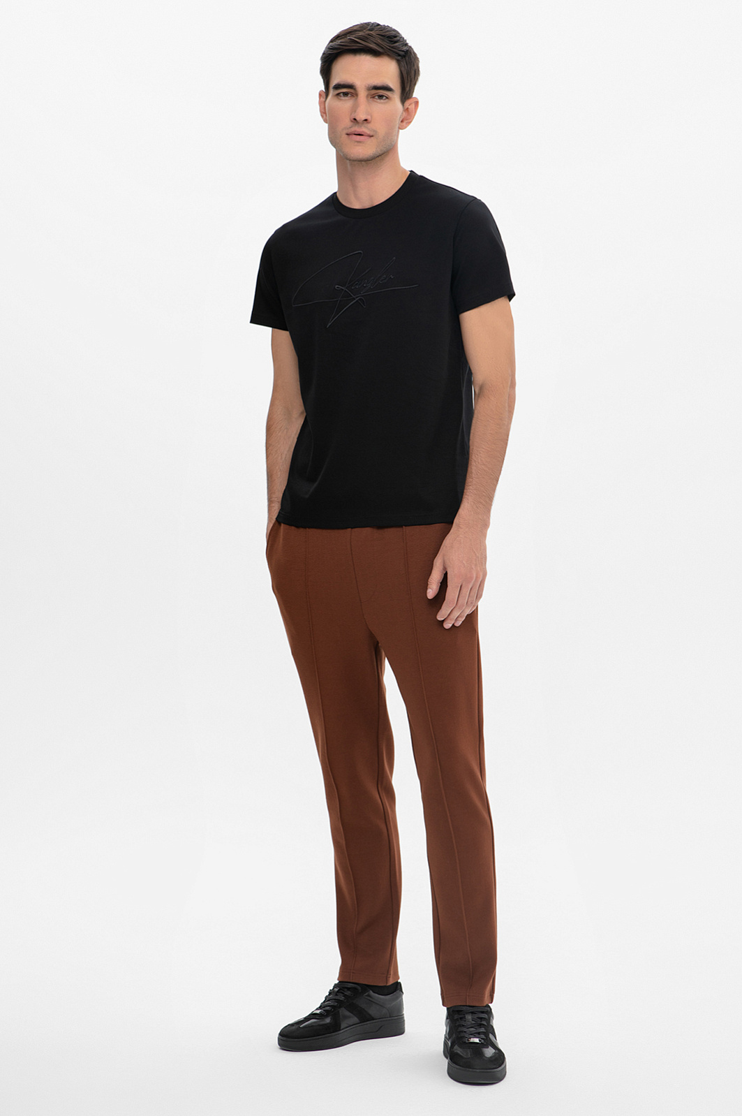 Чёрная футболка KANZLER — идеальное сочетание минимализма и брендинга. На передней полочке изделия изящно расположился каллиграфический логотип, мгновенно узнаваемый и подчёркивающий принадлежность к бренду. Модель с круглым вырезом выполнена из мягкого хлопкового джерси, которое приятно прилегает к коже, не сковывая движений и обеспечивая отличную циркуляцию воздуха. Эта футболка — не просто базовая вещь, а ключевой элемент гардероба, который акцентирует внимание на вашем уникальном стиле и вкусе. С ней можно легко создавать как повседневные, так и более выразительные образы. Параметры модели: рост 192, 101-76-97 Размер на модели: M
