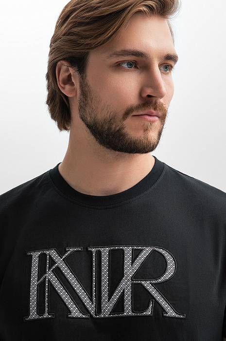 Футболка из хлопка с логотипом, цвет черный, цена 2 990 руб., код 268682 - купить в Нижнем Новгороде в интернет-магазине KANZLER