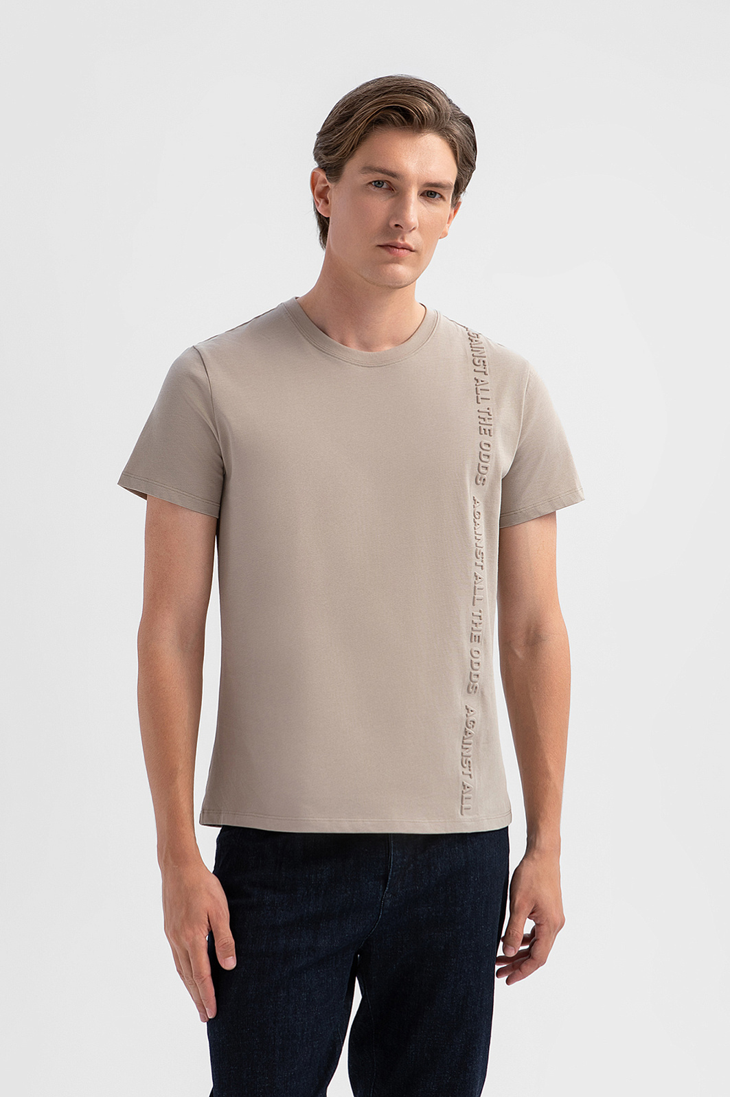 Бежевая футболка KANZLER – символ веры в себя и призыв двигаться к своим целям несмотря ни на что, – об этом говорит тисненый слоган на груди. Ключевая особенность модели – натуральный материал с шелковистой фактурой. 100-процентный хлопок, мягкий и гипоаллергенный, обеспечивает идеальную воздухопроницаемость и отводит влагу, а сатиновая фактура дарит тактильный комфорт на протяжении всего дня. Крой точно следует линиям тела, подчеркивая мужественность фигуры и сохраняя свободу движения. Параметры модели: рост 191, 97-77-99 Размер на модели: M