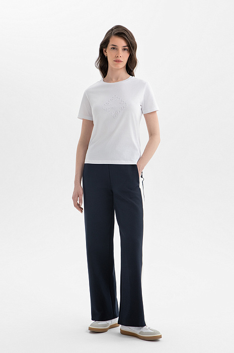 Белая футболка KANZLER с круглым вырезом из натурального хлопка — универсальная модель, сочетающая комфорт и лаконичную элегантность. Она легко вписывается в спортивный и городской стили. Главный декоративный акцент — изящная вышивка на груди — добавляет модели утончённость, сохраняя её современный минималистичный характер. Мягкий трикотаж из чистого хлопка приятен к телу. Природные гипоаллергенные воздухопроницаемые волокна поддерживают ощущение свежести, обеспечивая комфорт в течение всего дня.