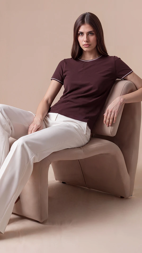 Футболка из хлопка, шелка и льна, цвет коричневый, цена 5 990 руб. - купить в интернет-магазине KANZLER