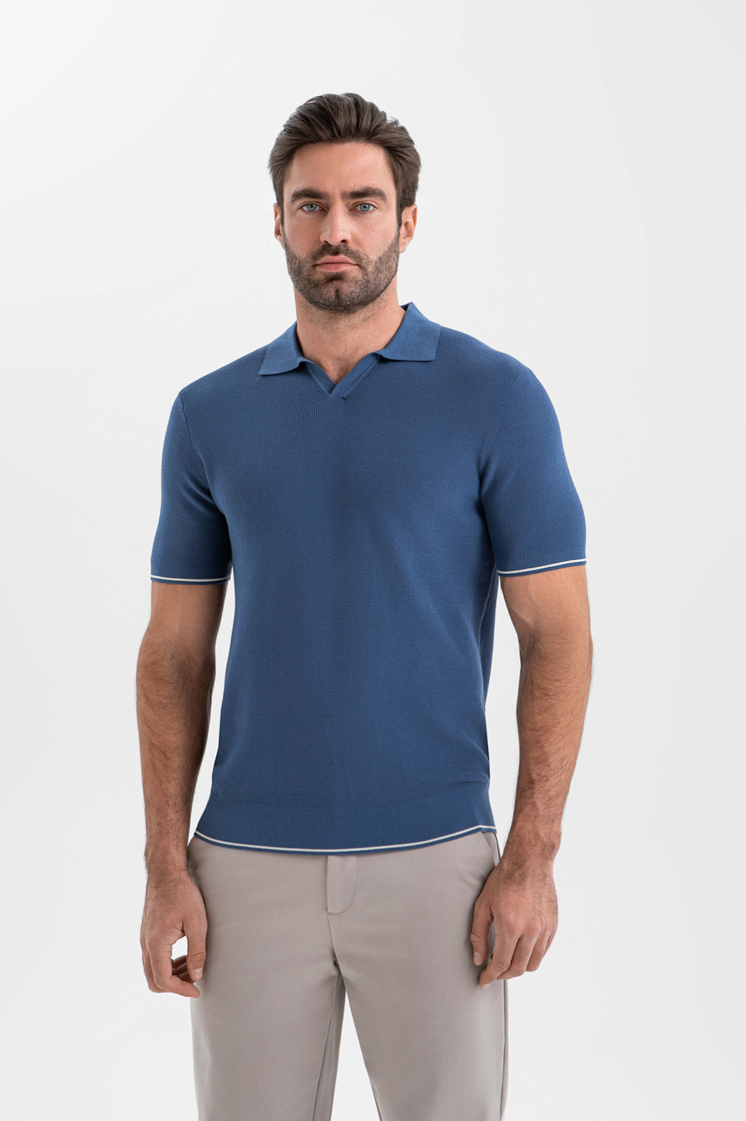 Поло из хлопка Пима, цвет голубой, цена 8 990 руб., код 271104 - купить в Нижнем Новгороде в интернет-магазине KANZLER