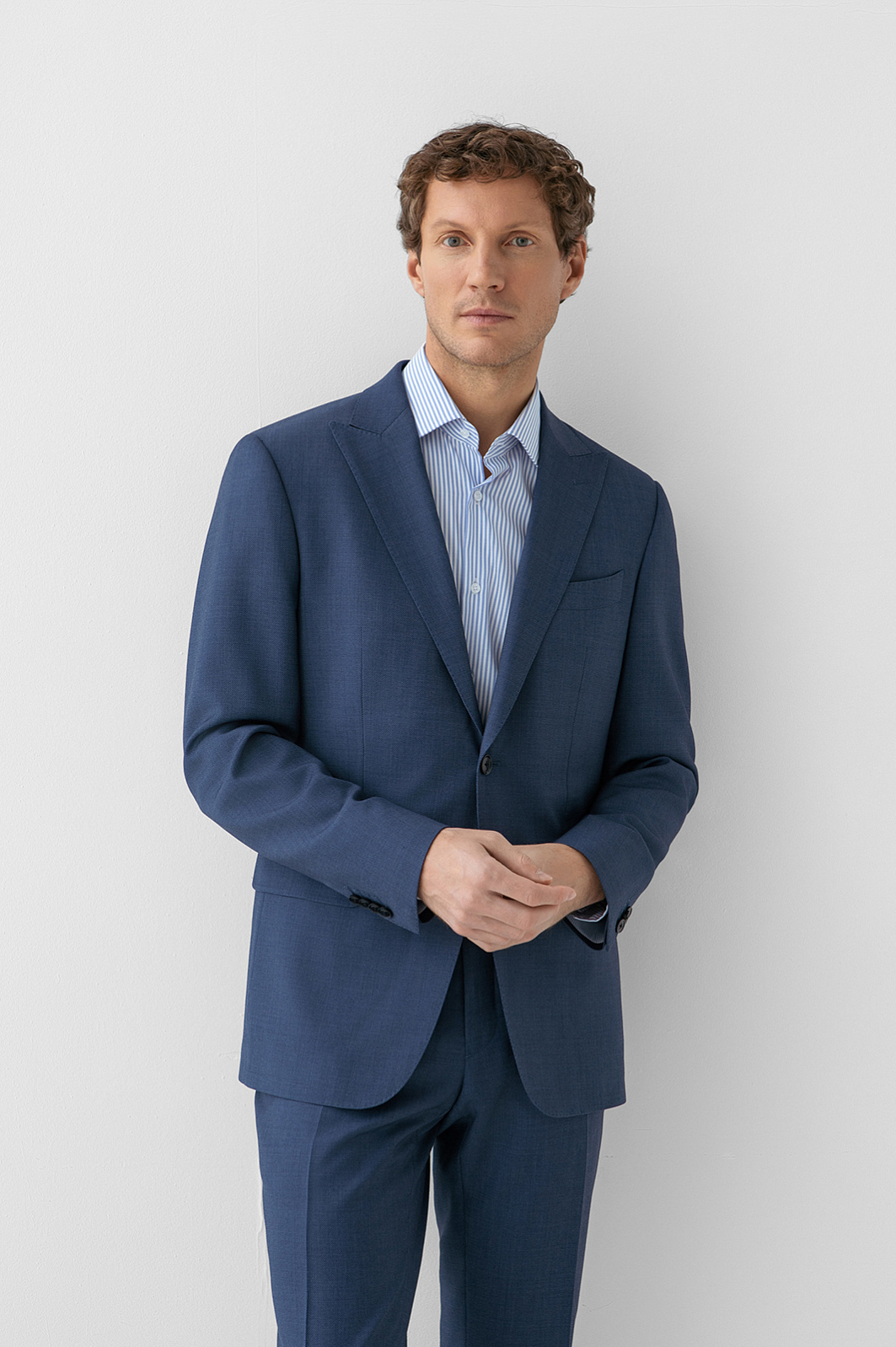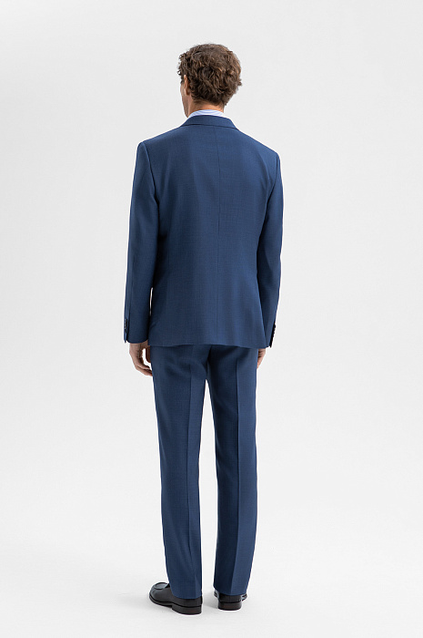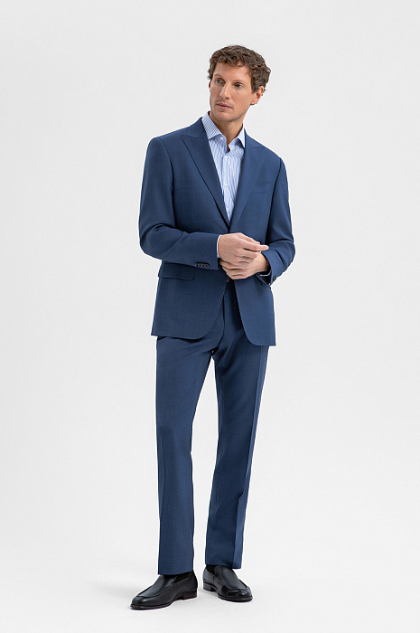 Роскошный синий костюм KANZLER из шерсти мериноса подходит для официальных мероприятий, переговоров и светских вечеров. Мягкое плечо делает посадку пиджака непринуждённой и естественной. Слегка заострённый лацкан и нагрудный карман с листочкой подчёркивают изысканность кроя. Строгие стрелки на брюках вытягивают силуэт и придают фигуре стройность. Водоотталкивающая обработка помогает костюму оставаться безупречным в условиях переменчивой погоды. Дорогая ткань из шерсти мериноса бережно сохраняет естественное тепло, создавая идеальный микроклимат.