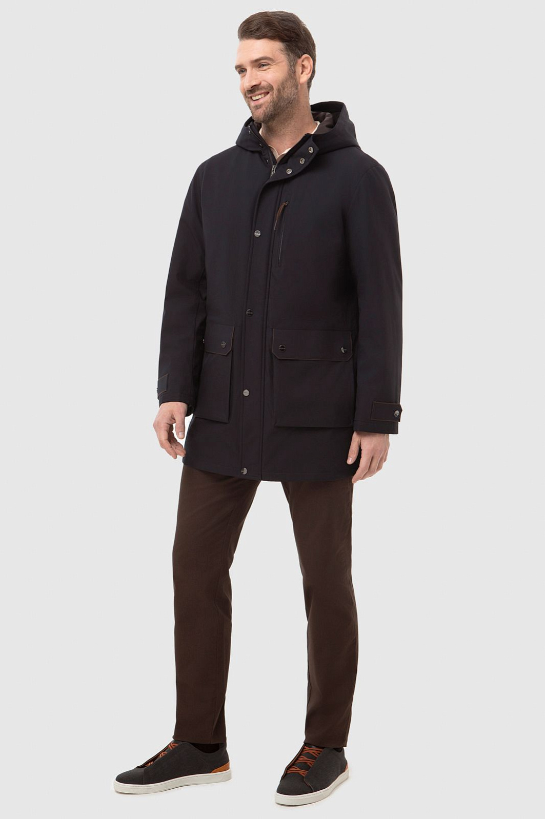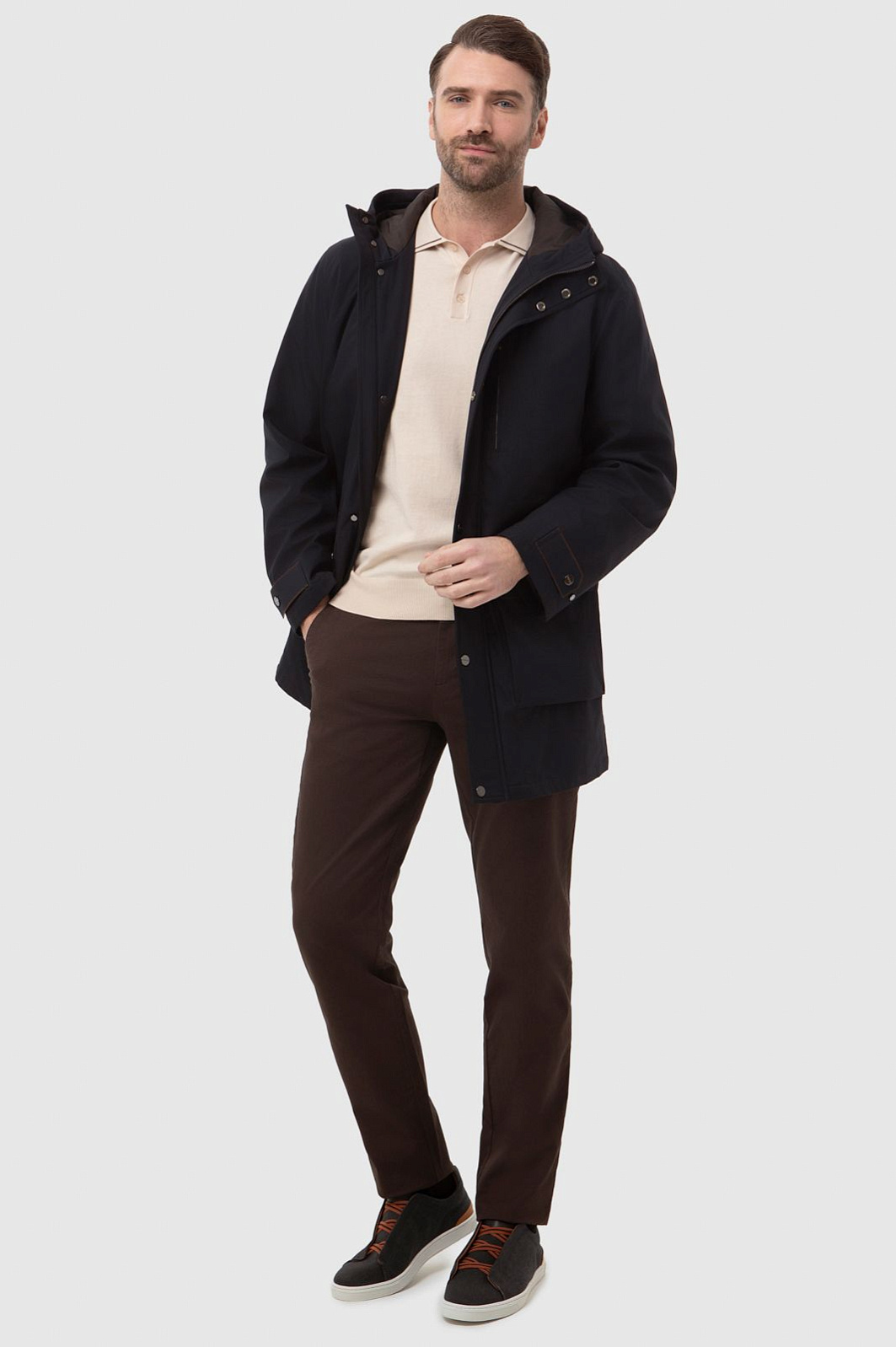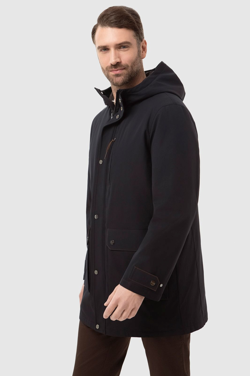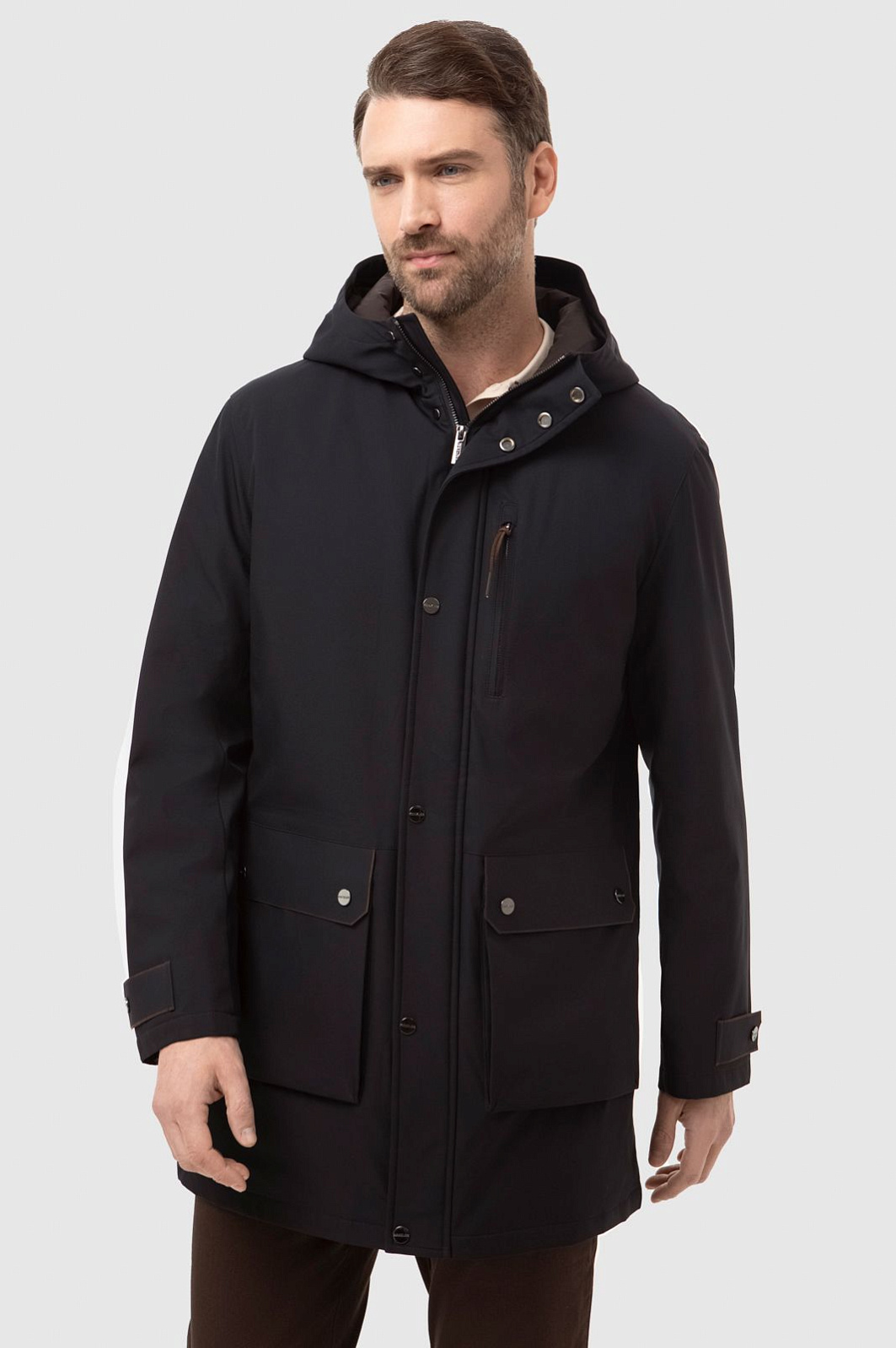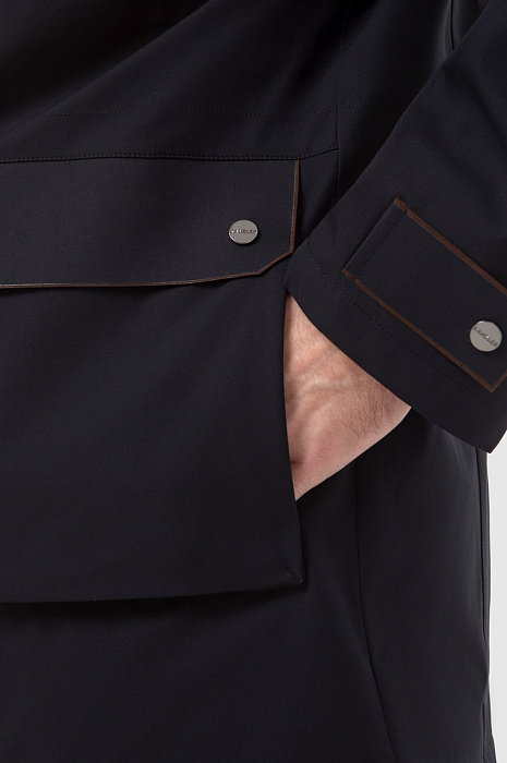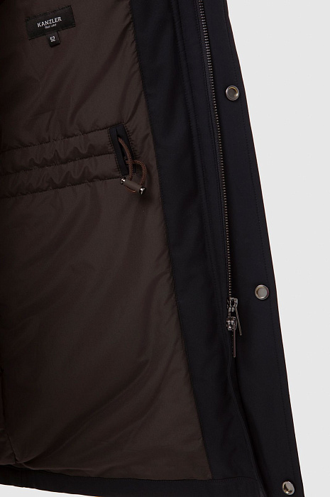 Демисезонная теплая черная куртка KANZLER с капюшоном и коричневыми деталями сочетает функциональный подход, урбанистический шик и элегантность. Модель отличается множеством продуманных деталей. Застежка-молния прикрыта планкой с металлическими кнопками. Теплый капюшон, объединенный с воротником-стойкой, защищает голову и шею от непогоды. Верхний прорезной карман на молнии удобен для хранения карт и документов. В больших нижних карманах, прикрытых клапанами, можно согреть руки. Манжеты фиксируются в двух положениях — свободнее и поплотнее. Скрытая кулиска по линии талии с двойным шнурком регулирует степень прилегания куртки. Непродуваемый верхний слой, наполнитель и подкладка сделаны из полиэстера — практичного, износоустойчивого и сберегающего тепло материала. Куртка KANZLER — незаменимая вещь для жизни в мегаполисе и загородных прогулок на свежем воздухе.