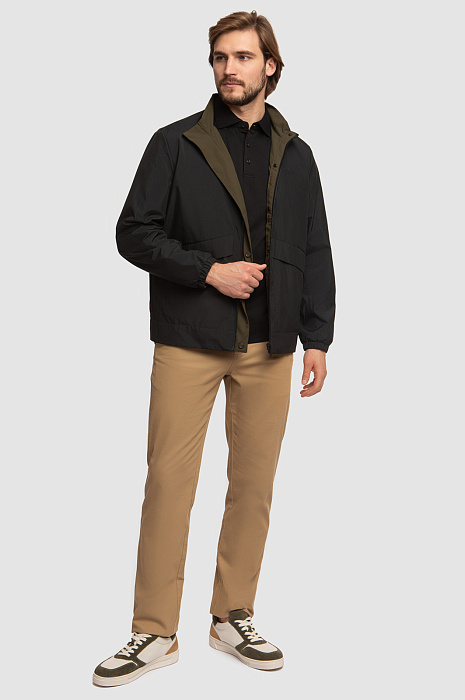 Двусторонняя куртка KANZLER - актуальный тренд, ода практичности и современное решение для мужского гардероба. Главные плюсы двусторонней верхней одежды - возможность быстро изменить свой стиль – с делового на повседневный, со спортивного на более офисный, а также продуманная экономия места в шкафу. Носите модель в цвете с хаки с белыми, бежевыми или коричневыми брюками, а в черном исполнении - в более лаконичных образах с темными джинсами или брюками. Модель застегивается на молнию, скрытую планкой в тон изделия. Актуальности изделию добавляют вместительные накладные карманы, а для важных мелочей дизайнеры предусмотрели карман на рукаве, который особенно актуален в поездке или путешествии, когда нужно что-то быстро достать. Непромокаемую и непродуваемую ткань изготовили из прочных синтетических волокон. Специальная водотталкивающая технология в паре с высоким воротником и манжетами на резинке обеспечивает оптимальную защиту от ветра и дождя. Параметры модели: рост 187, 100-81-97 Размер на модели: 50
