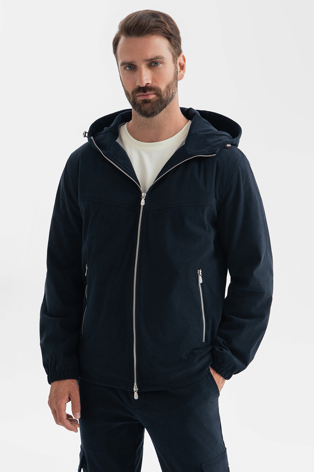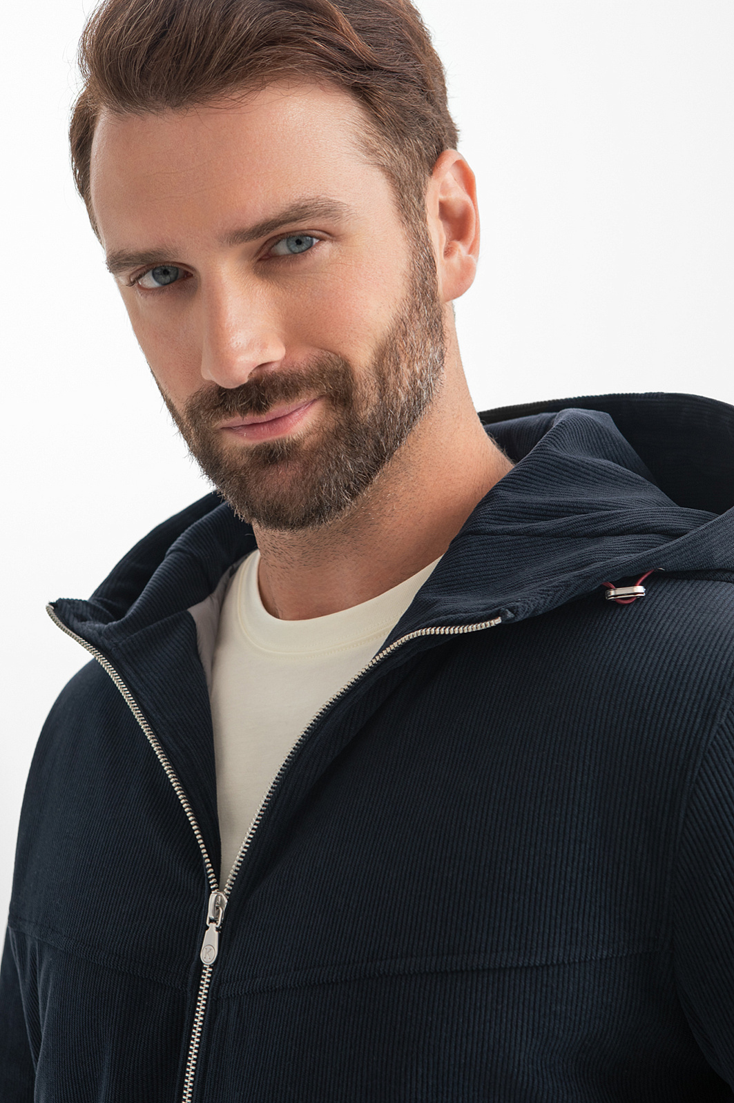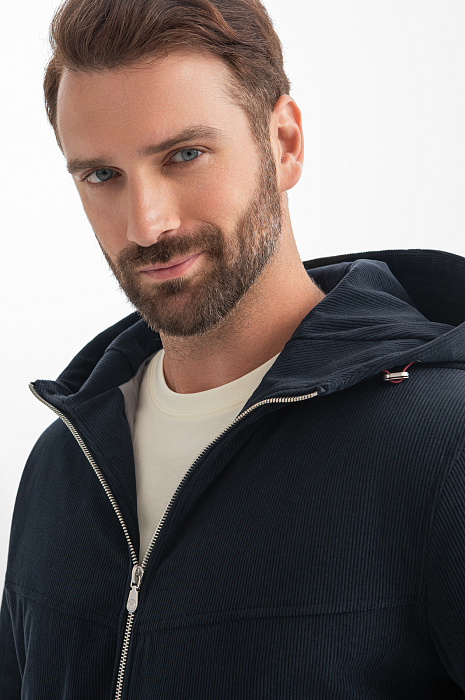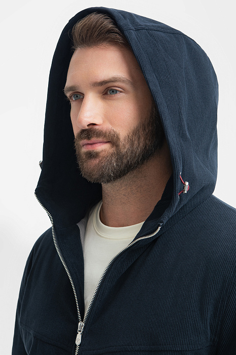 Куртка с капюшоном из вельвета Limited edition, цвет синий, цена 12 990 руб., код 268223 - купить в Нижнем Новгороде в интернет-магазине KANZLER