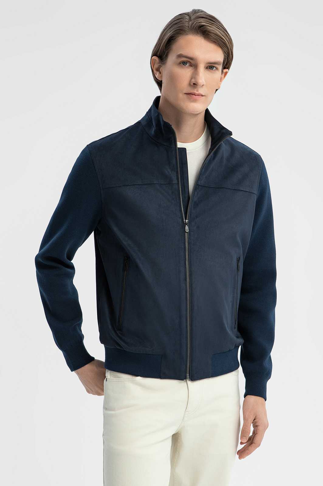 Куртка из алькантары, цвет синий, цена 24 990 руб., код 268997 - купить в Нижнем Новгороде в интернет-магазине KANZLER