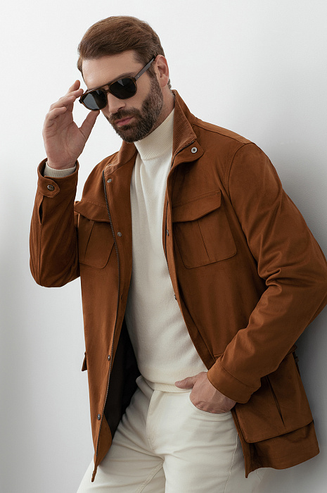 Куртка из алькантары, цвет коричневый, цена 24 990 руб., код 268999 - купить в Нижнем Новгороде в интернет-магазине KANZLER