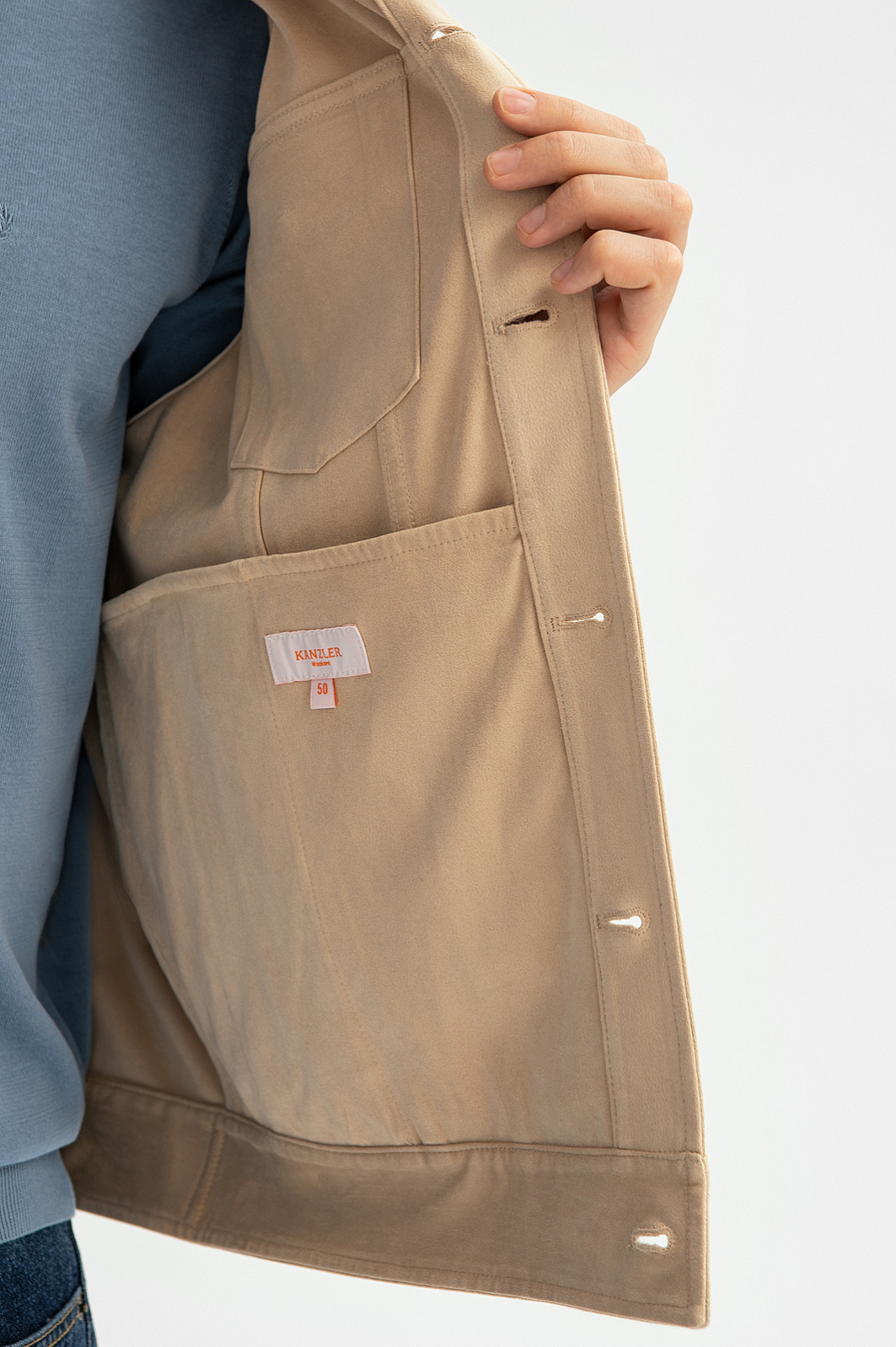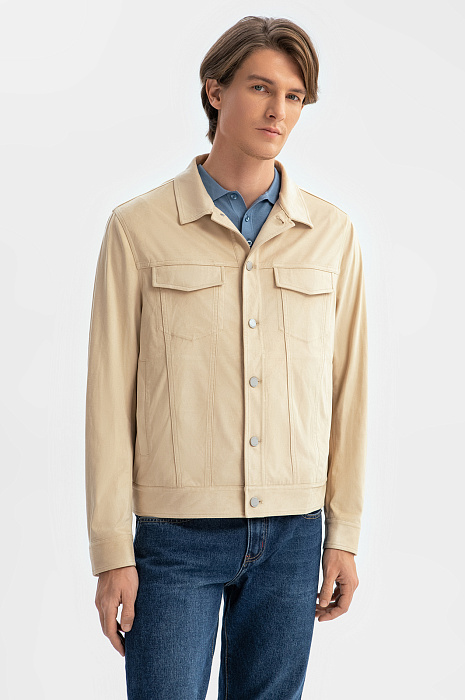 Куртка из алькантары бежевого цвета, цвет бежевый, цена 9 990 руб., код 269000 - купить в Нижнем Новгороде в интернет-магазине KANZLER