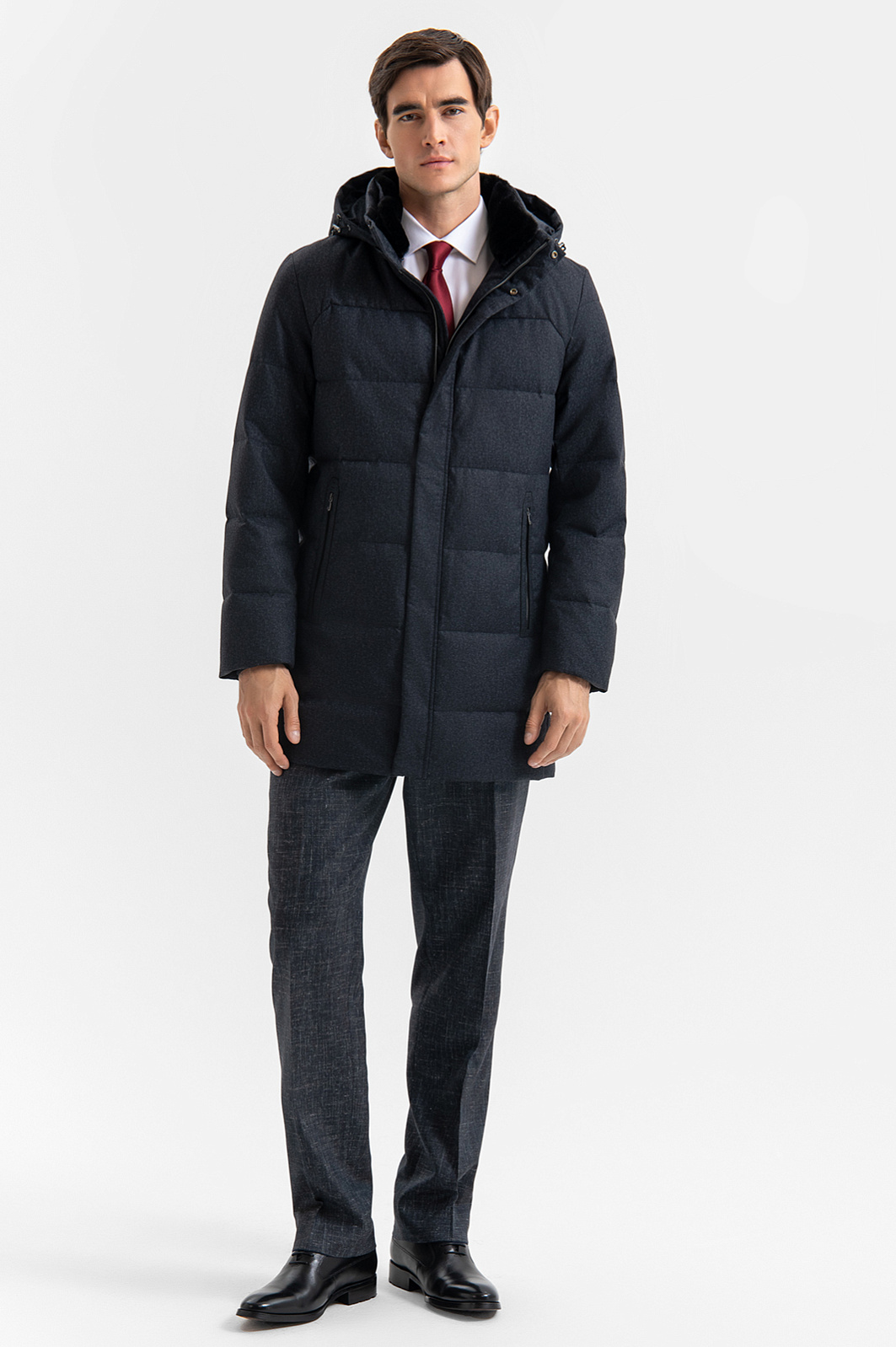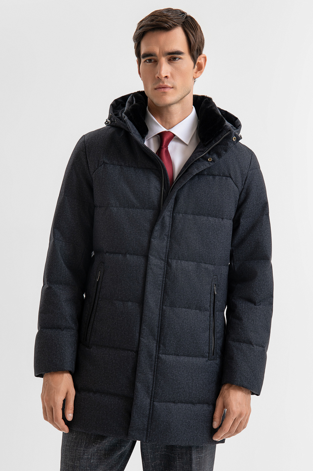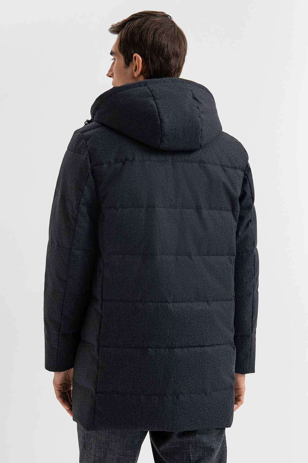 Утепленная стеганая темно-серая куртка KANZLER с капюшоном с лаконичным и собранным силуэтом — идеальный вариант для холодного сезона. Модель отличается чистыми линиями, актуальной минималистичной эстетикой и универсальностью — её легко вписать как в повседневные, так и в более формальные образы. Тёплый капюшон, высокий воротник с уютной пушистой внутренней вставкой и планка с кнопками, прикрывающая застёжку-молнию, надёжно защищают от ветра, дождя и снега. Карманы на молнии обеспечивают удобство и безопасность хранения мелочей. Внешний материал, подкладка и утеплитель выполнены из 100% полиэстера — износостойкого и неприхотливого в уходе. Параметры модели: рост 192, 101-76-97 Размер на модели: 50