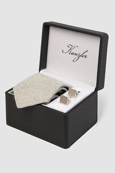 Подарочный набор (галстук + запонки), цвет серый, цена 4 990 руб., код 268130 - купить в Нижнем Новгороде в интернет-магазине KANZLER