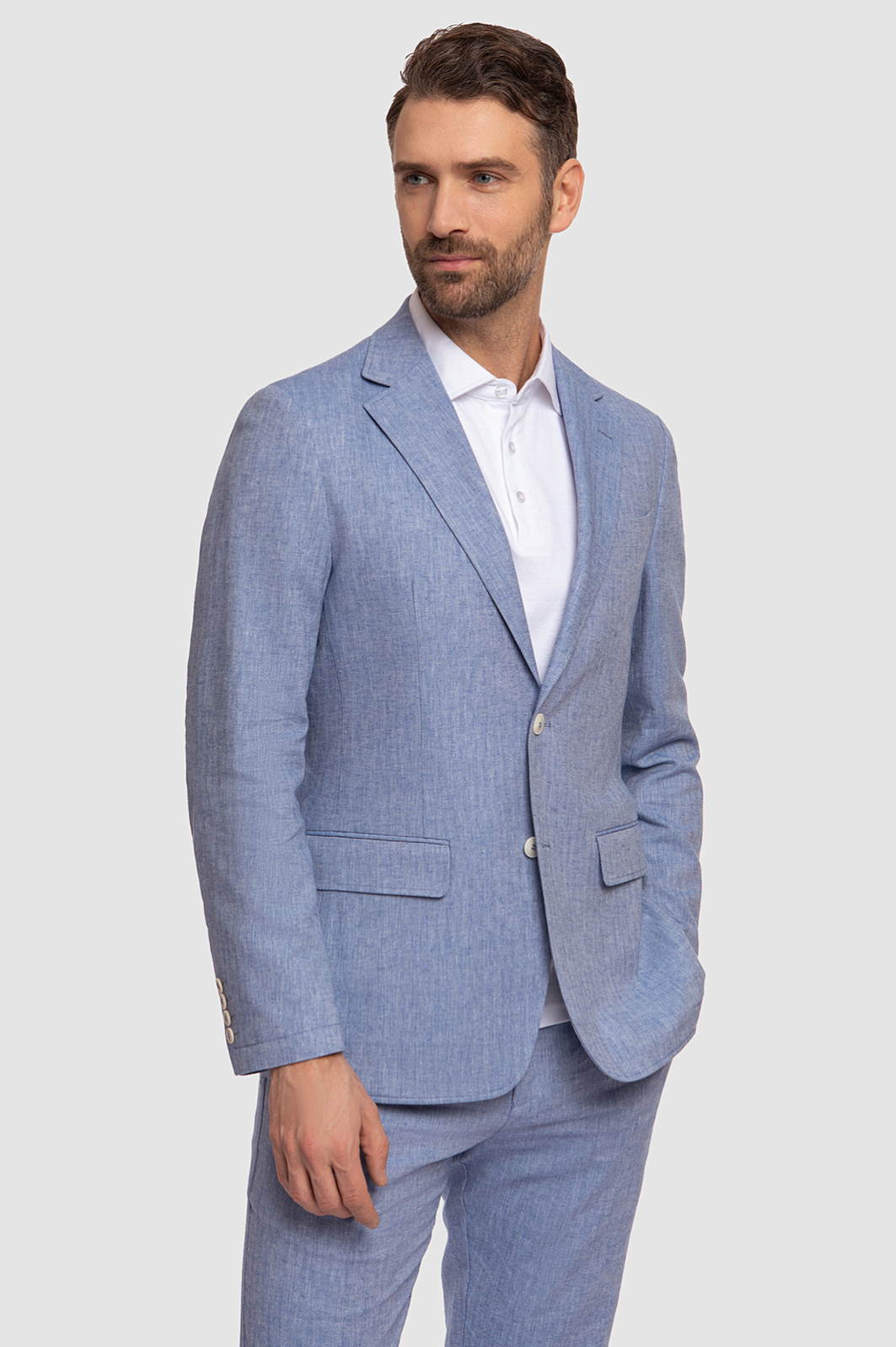 Пиджак из льна и хлопка, голубой цвет