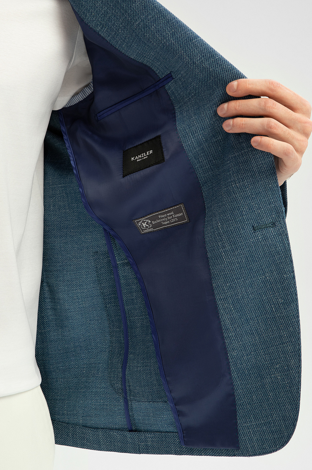 Пиджак из шерсти, льна и шелка, устойчивый к сминанию, цвет голубой, цена 19 990 руб., код 268967 - купить в Нижнем Новгороде в интернет-магазине KANZLER