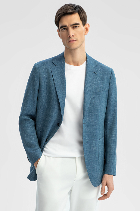 Пиджак из шерсти, льна и шелка, устойчивый к сминанию