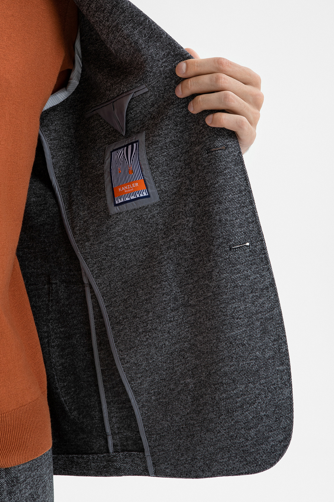 Пиджак однобортный с эффектом меланжа, цвет серый, цена 16 990 руб., код 270013 - купить в Нижнем Новгороде в интернет-магазине KANZLER