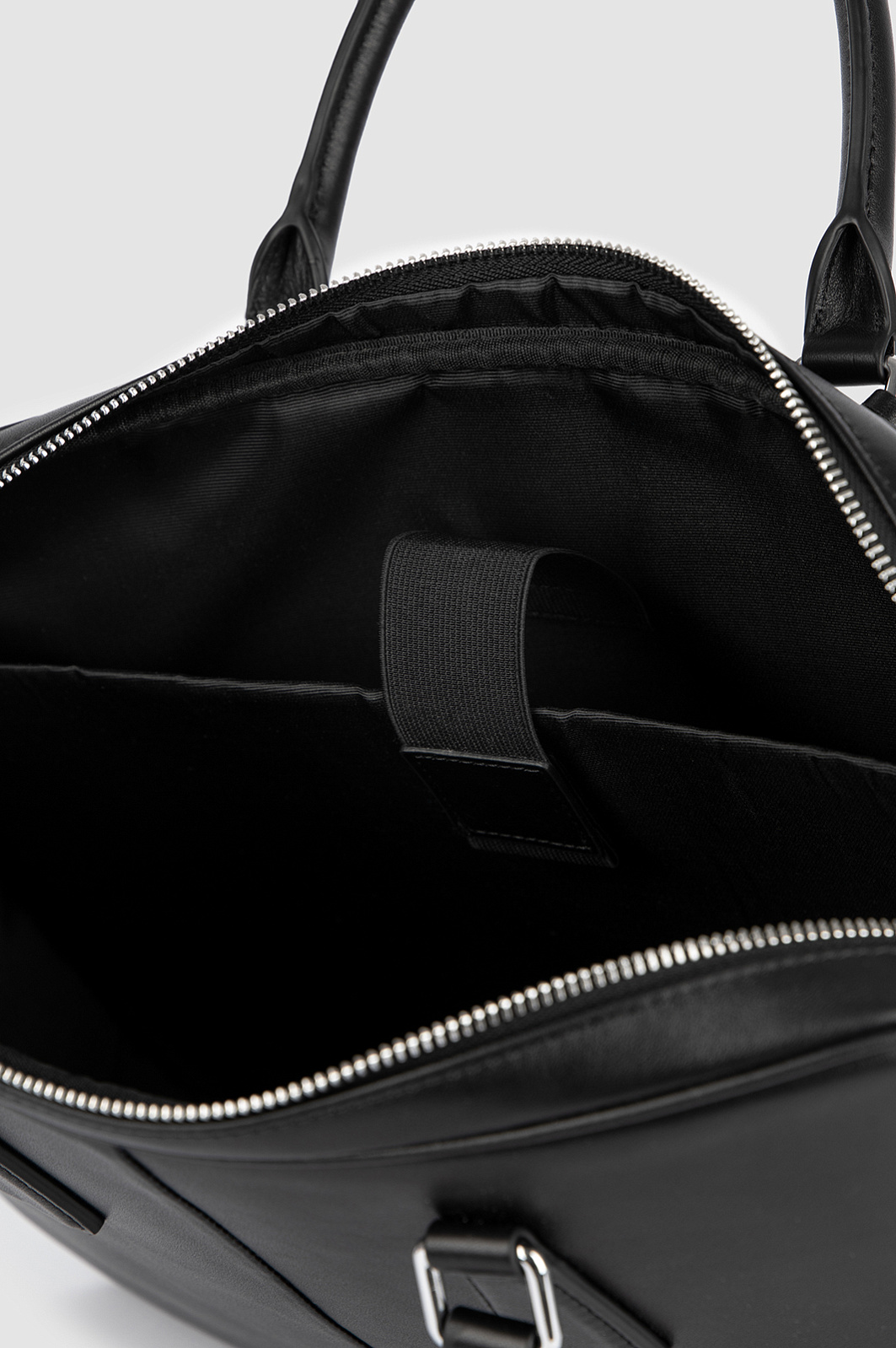 Изящный черный портфель KANZLER из гладкой кожи выглядит роскошно и самодостаточно благодаря лаконичному дизайну, аккуратным деталям и фурнитуре из белого металла. Логотип и бирка с тиснением придают портфелю индивидуальность. Внутри — вместительное основное отделение для ноутбука и отделение для документов. Портфель можно держать за ручки, а в поездках и путешествиях — носить на широком плечевом ремне из прочного текстиля. Матовая гладкая натуральная кожа эффектно смотрится и хорошо выдерживает испытание временем.
