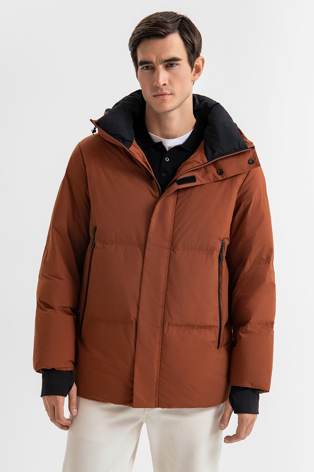 Пуховик с водоотталкивающей обработкой и внутренними подтяжками