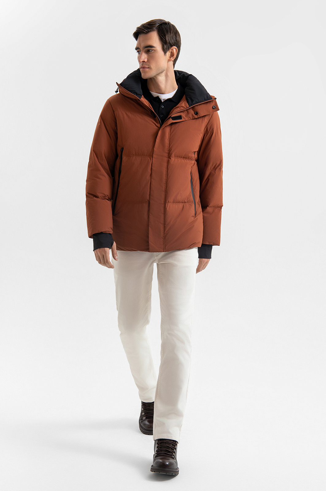 Короткий пуховик KANZLER оттенка корицы создан для тех, кто ценит комфорт и динамичный стиль. Тёплая легкая модель отлично подходит для активного городского ритма. Высокий воротник надежно защищает от холодного воздуха. Застёжка-молния дополнена планкой на липучках — для надёжной защиты от ветра. Контрастные детали — внутренняя часть воротника, прорезиненная окантовка карманов и эластичные манжеты с отверстием для большого пальца на рукавах — добавляют модели графичности, современного звучания и подчеркивают спортивный характер. Внешний слой выполнен из эстетичного матового полиэстера с водоотталкивающей обработкой. Внутри — натуральный наполнитель из пуха с пером, который согреет и в холода, и в морозы. Параметры модели: рост 192, 101-76-97 Размер на модели: 50