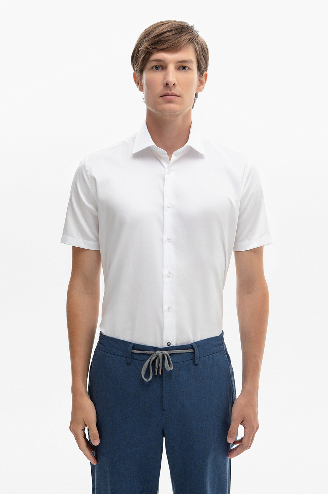 Белая хлопковая сорочка с коротким рукавом, легкая в уходе, цвет белый, цена 6 990 руб., код 267497 - купить в Нижнем Новгороде в интернет-магазине KANZLER