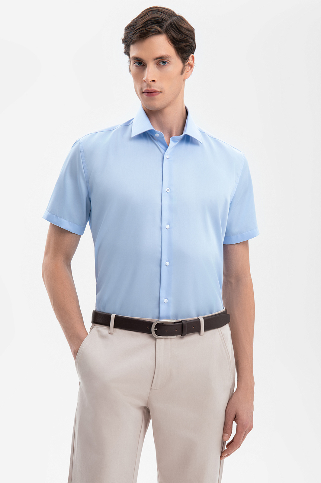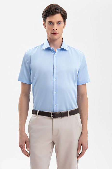 Сорочка с коротким рукавом из хлопка, устойчивая к сминанию, цвет голубой, цена 5 592 руб., код 269350 - купить в Нижнем Новгороде в интернет-магазине KANZLER