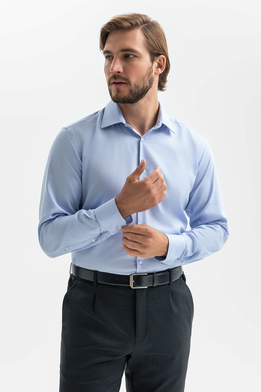 Нежно-голубая сорочка KANZLER из хлопка, устойчивого к сминанию, воплощает стремление носить натуральные благородные ткани и выглядеть аккуратно весь день. Секрет безупречности — небольшое включение эластана (5%), который поддерживает форму материала и не дает ему сминаться. А невесомые воздухопроницаемые волокна хлопка (95%) позволяют коже дышать, берегут свежесть и естественное тепло тела. Сорочка привносит в офисные будни легкость и элегантность. Приталенный крой следует линиям тела, ненавязчиво подчеркивая мужественность. Параметры модели: рост 187, 100-81-97 Размер на модели: 40