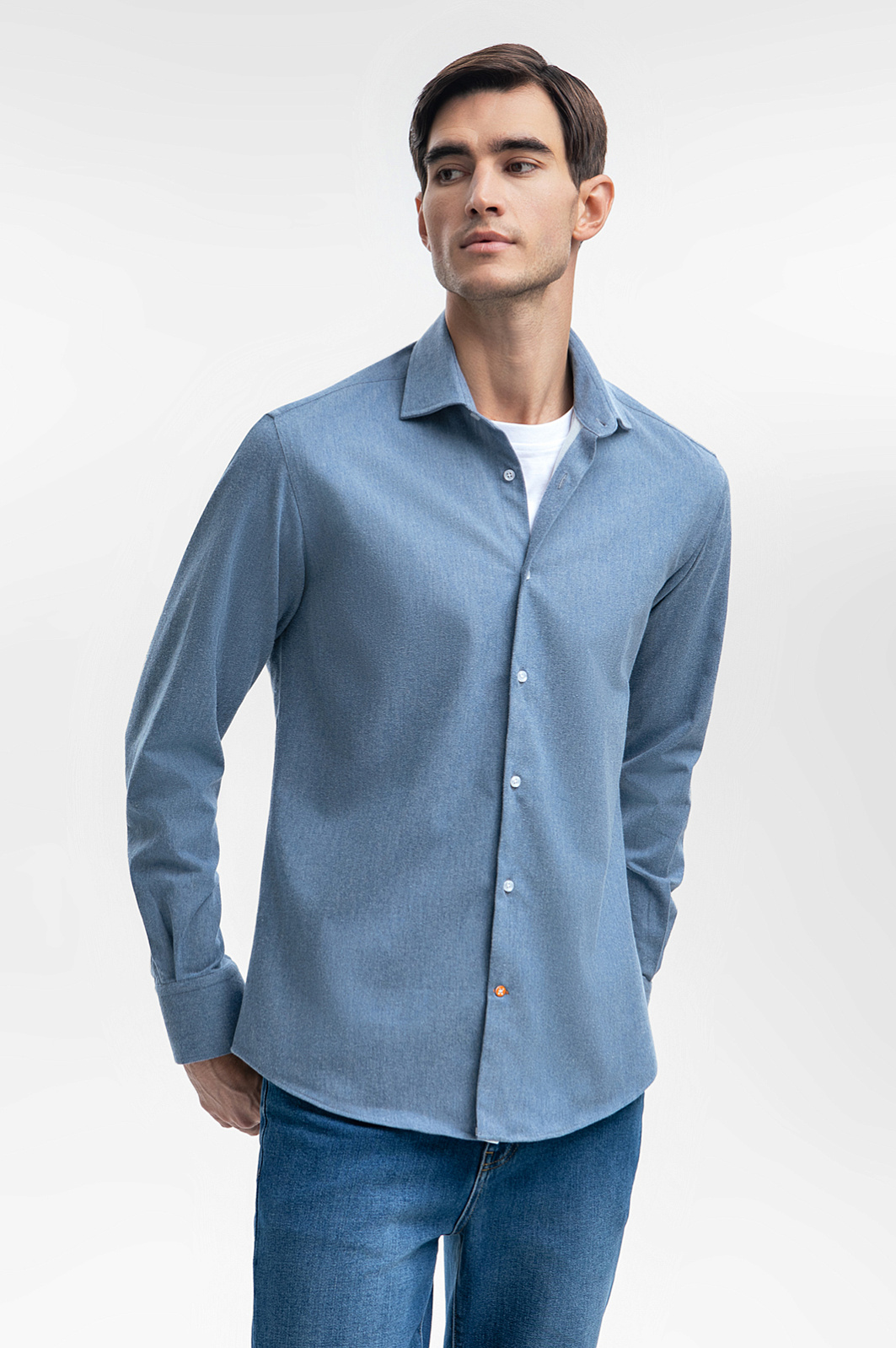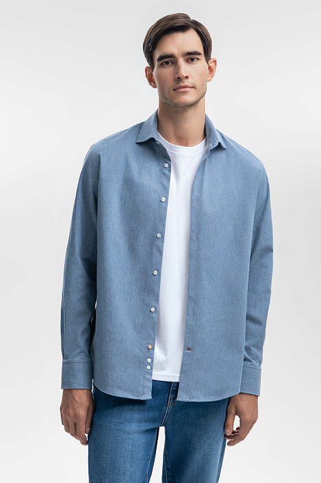 Фланелевая сорочка из устойчивой к сминанию ткани, цвет голубой, цена 4 990 руб., код 268639 - купить в Нижнем Новгороде в интернет-магазине KANZLER