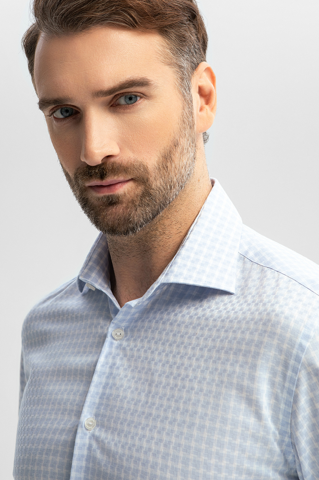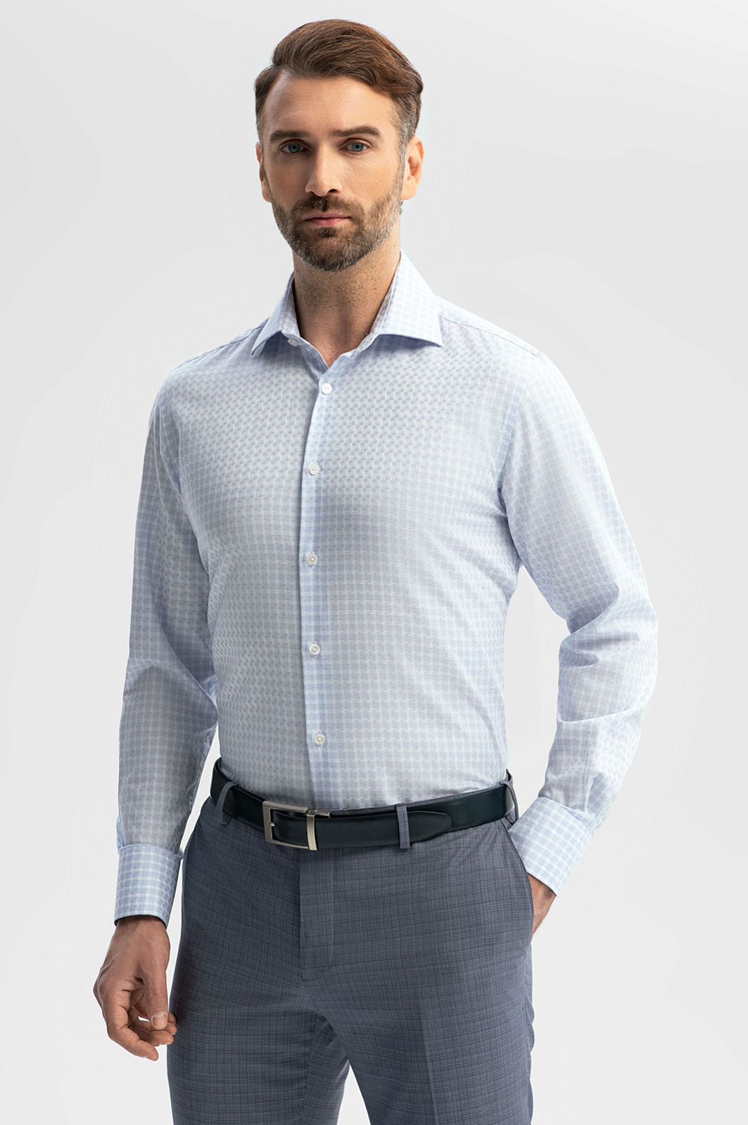 Голубая сорочка KANZLER – отличное дополнение к гардеробу мужчины, который стремится выглядеть безупречно в любой обстановке. Невесомая ткань из смеси хлопка и лиоцелла обеспечивает нежное прикосновение и оптимальную воздушную циркуляцию. Экологичный гипоаллергенный лиоцелл обладает способностью впитывать влагу и создавать ощущение прохлады, что особенно актуально в теплое время года. Классический крой подходит любому типу фигуры и гарантирует, что вы будете чувствовать себя комфортно в течение всего дня или вечера. Классический принт в клетку переосмыслили, придав ему интересный оптический эффект. Модель органично встроится в образы как для деловых встреч, так и для неформальных событий. Параметры модели: рост 189, 102-80-99 Размер на модели: 40