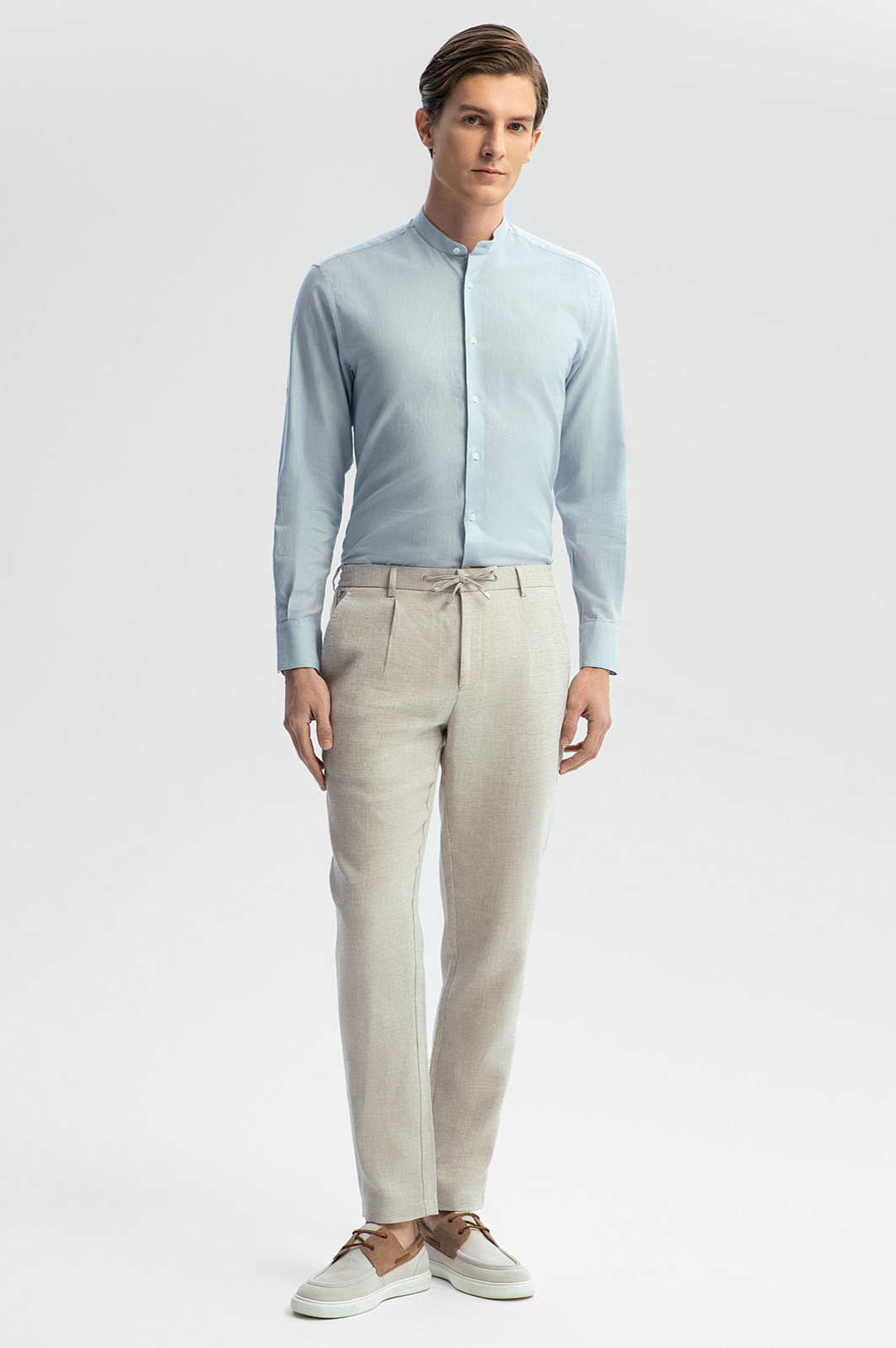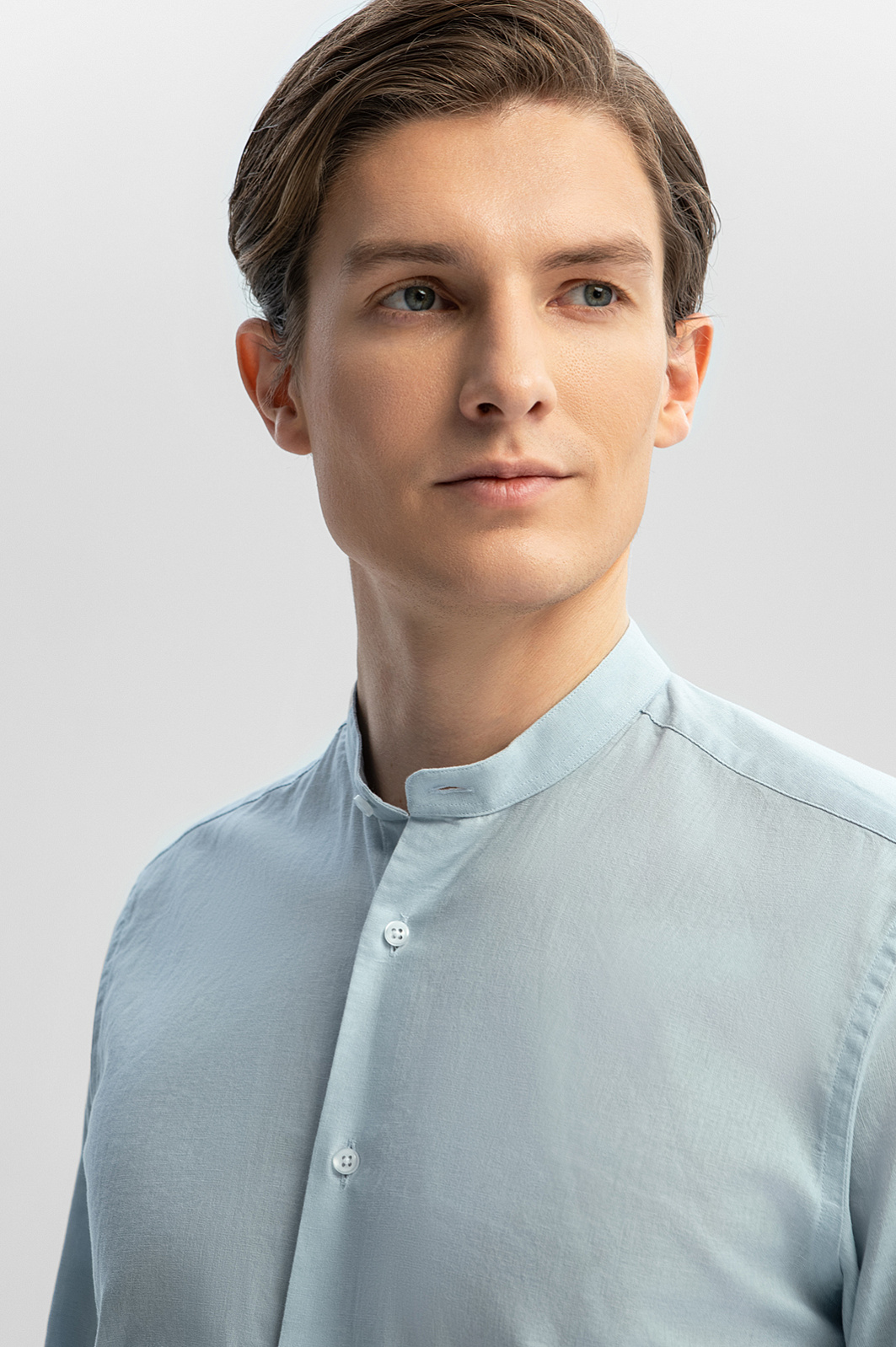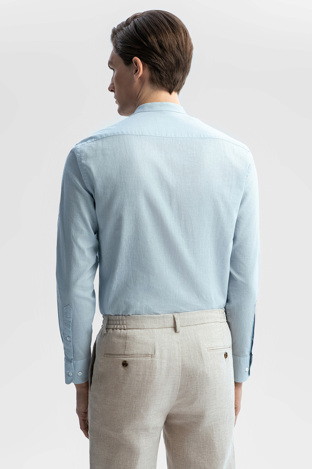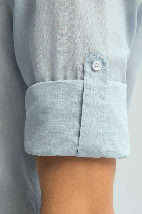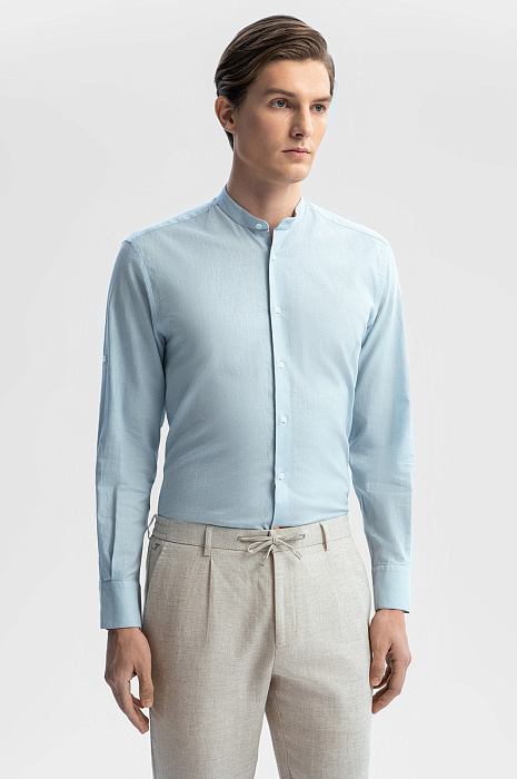 Светло-голубая сорочка KANZLER изо льна и хлопка с воротником-стойкой — идеальная вещь для теплых дней. Модель подойдет для расслабленного отдыха и путешествий, а также для офиса, в котором работают творческие люди, не скованные рамками дресс-кода. Длину рукава можно регулировать. Свободный крой сорочки не сковывает движений. Особого внимания заслуживает приятная фактурная ткань, сотканная изо льна и хлопка. Такое сочетание делает материал более прочным и долговечным. Гигроскопичный лен создает в жару ощущение прохлады. Воздухопроницаемый дышащий хлопок придает ткани легкость. Параметры модели: рост 191, 97-77-99 Размер на модели: 40