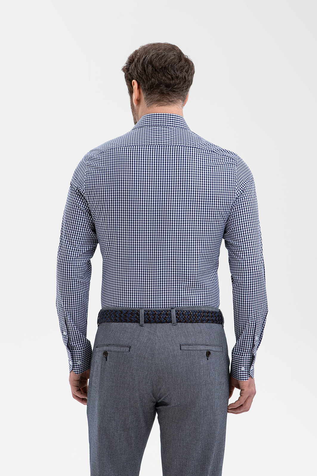 Синяя сорочка KANZLER прямого кроя из чистого хлопка — универсальная модель для мужчин, которые выбирают уверенный стиль и комфорт. Со строгими брюками и пиджаком она уместна в офисном контексте, а с джинсами или неформальными брюками — в местах отдыха. Клетка добавляет образу визуальный ритм, оставаясь сдержанной и уместной в рамках современной классики. Прямой крой не ограничивает свободу движений и подходит для любой комплекции. Материал из 100% хлопка мягко ложится по фигуре, приятен к телу и хорошо держит форму, оставаясь опрятным даже при активном ритме жизни. Гипоаллергенные натуральные волокна обеспечивают свежесть и комфорт в течение всего дня.