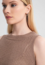 Топ KANZLER изо льна и хлопка в трендовом оттенке мокко — ключ к расслабленному и утонченному образу. Для создания модели дизайнеры выбрали природный материал, сочетающий в себе лучшие качества двух видов натуральных волокон: прочный лен дарит коже ощущение прохлады в жаркий день, а гипоаллергенный хлопок обеспечивает мягкость и воздухопроницаемость. Тонкое ажурное плетение привносит в образ глубину и фактуру. Мягкая резинка на вороте, проймах и подоле обеспечивает аккуратную посадку по фигуре. Теплый нейтральный цвет делает этот топ универсальным дополнением к гардеробу, легко сочетающимся с брюками, джинсами или юбками в коричневых или молочных оттенках. Параметры модели: рост 175, 88-65-92 Размер на модели: S