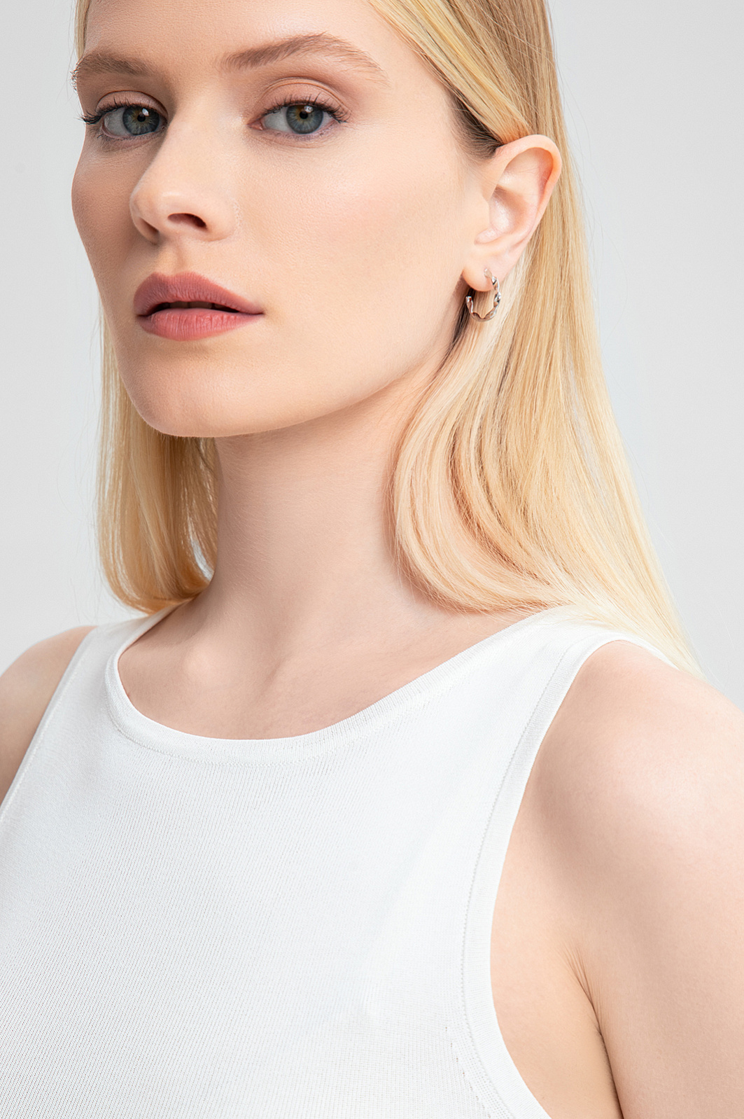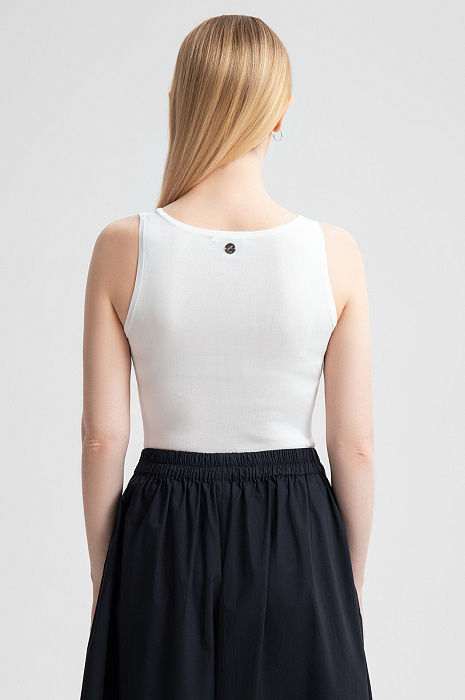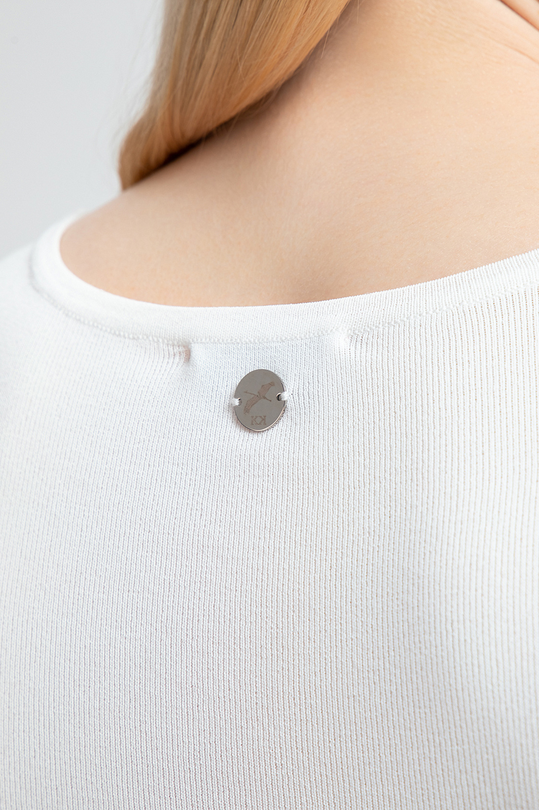 Белоснежный топ KANZLER – базовая модель, в которой воплотились утонченность и комфорт. Гладкая фактура материала нежно соприкасается с кожей, даря ощущение легкости и свежести в течение всего дня. Вискоза обеспечивает изделию мягкость, полиамид – износостойкость, а небольшое добавление эластана – удобную посадку по фигуре. Универсальный крой и округлый вырез горловины делают модель отличным выбором как для повседневного или делового гардероба, так и для особенного случая. Лаконичный фасон легко дополняет любые образы, будь то строгий костюм или расслабленные брюки и юбки в стиле кежуал. На спинке – небольшой металлический шильдик с символом бренда – журавлем. Параметры модели: рост 175, 88-65-92 Размер на модели: S