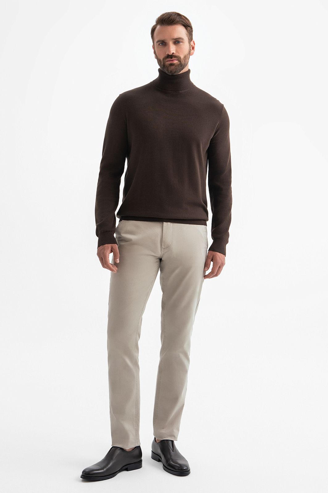 Водолазка KANZLER из натуральной шерсти трендового коричневого оттенка подойдет для создания уютных минималистичных образов в стиле casual.