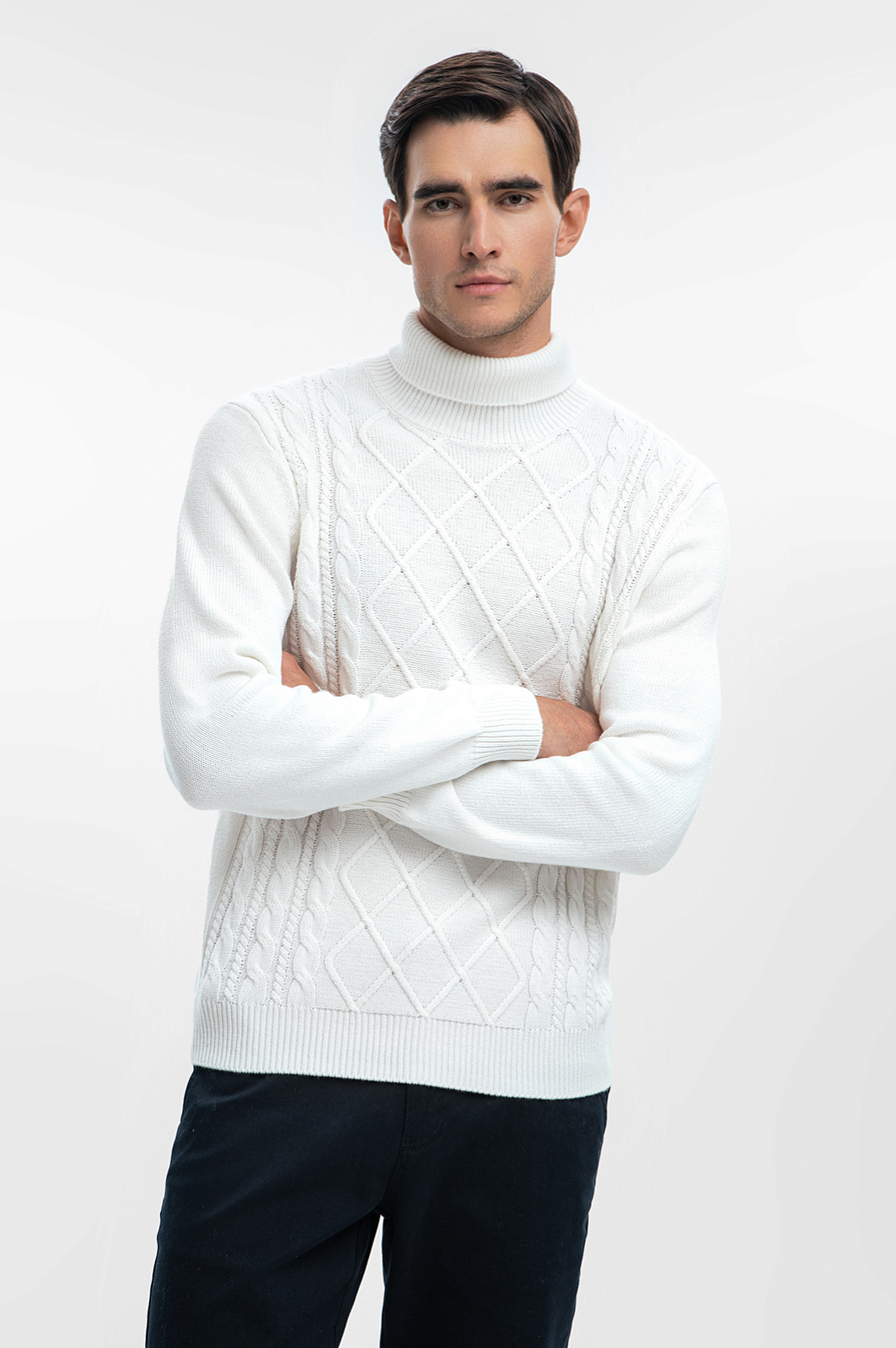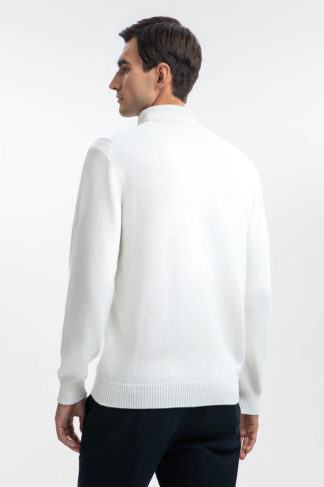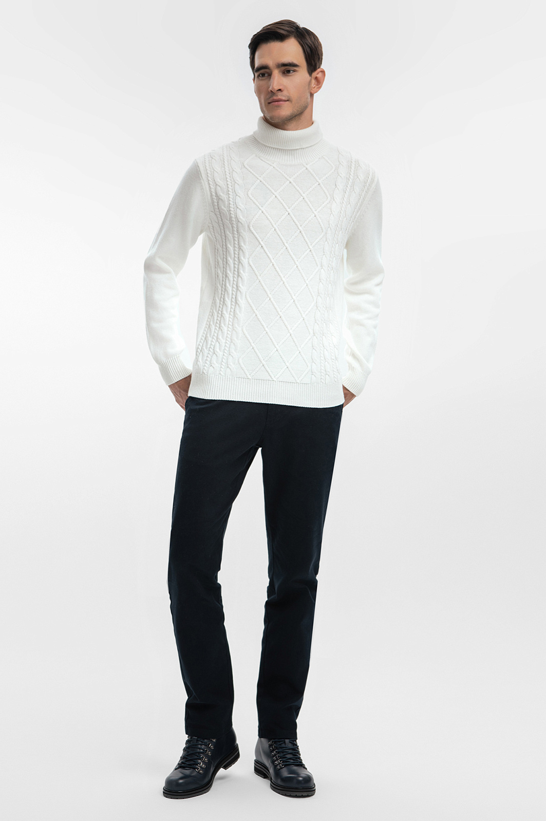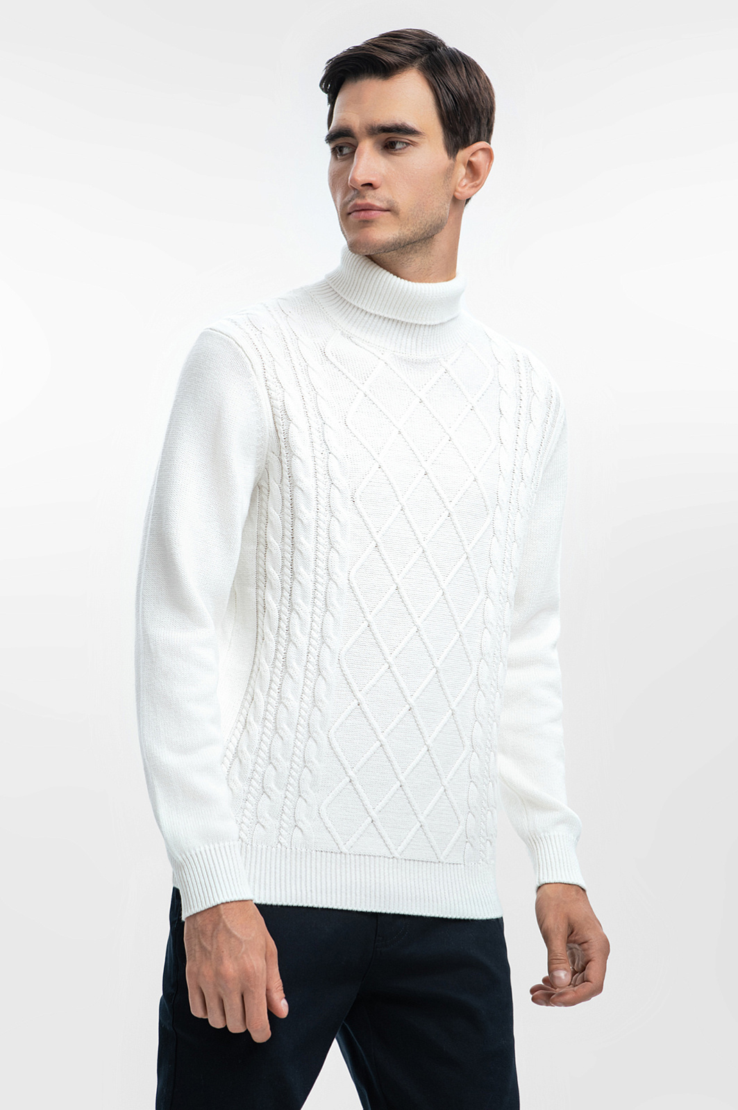 На создание нарядной водолазки KANZLER из хлопка и кашемира дизайнеров вдохновили американский и французский актер Тимоти Шаламе, который гениально сочетает в образах одежду разных текстур и отличается изысканным стилем. Благородная рафинированная модель воплощена в белом цвете и мягких очертаниях вязаного фактурного трикотажа, который объединяет достоинства хлопка и кашемира. Натуральный воздухопроницаемый хлопок поддерживает ощущение свежести. Дорогой кашемир придает ткани нежность, гарантируя непревзойденный комфорт в течение дня.