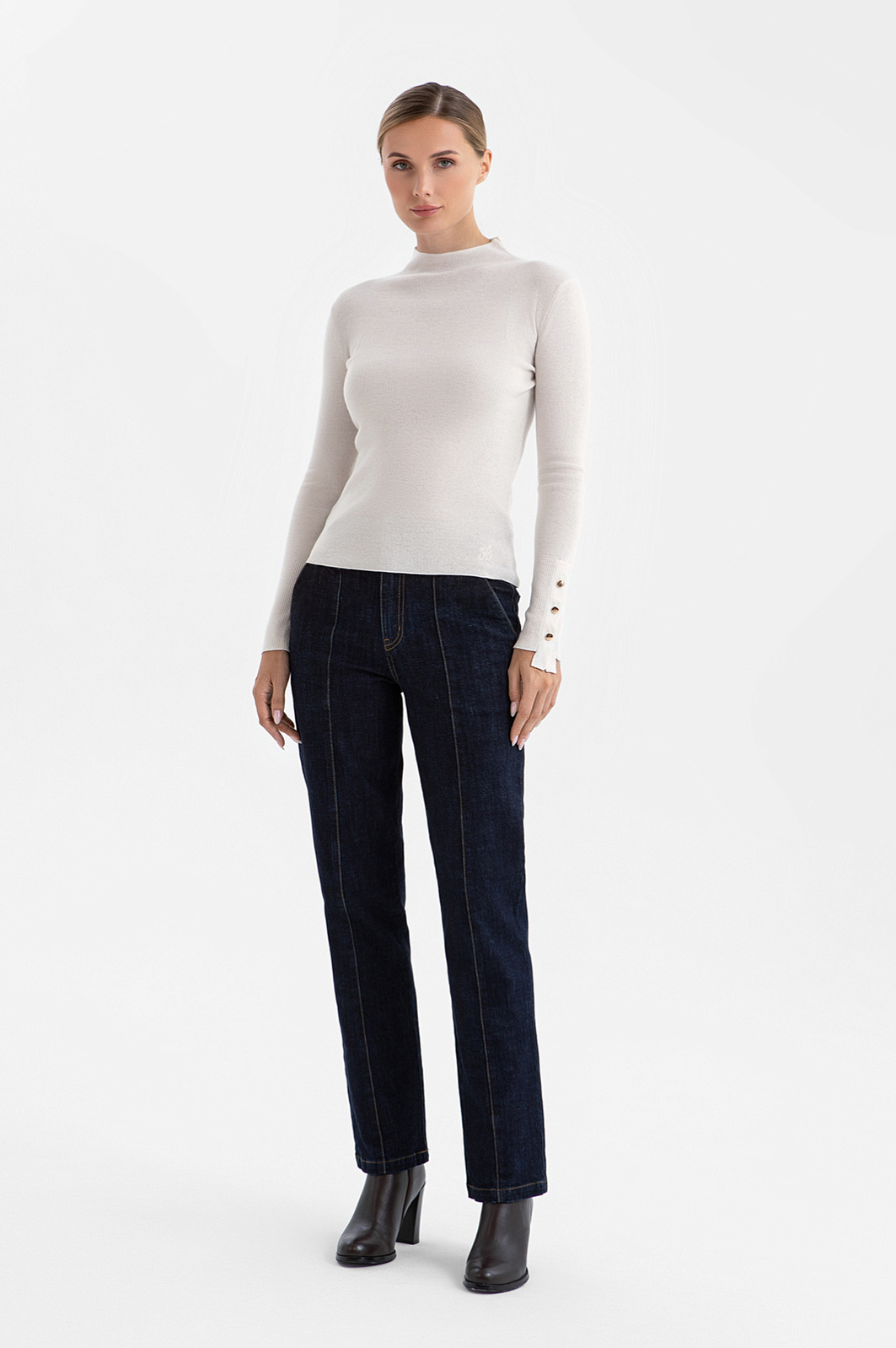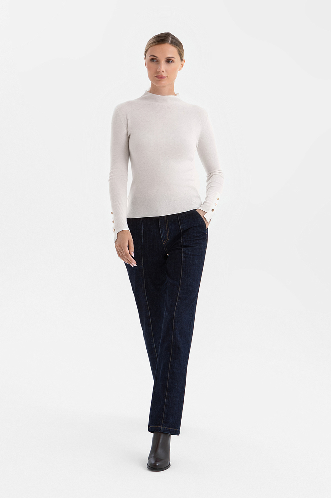 Водолазка KANZLER из чистой шерсти в светло-бежевом оттенке — воплощение элегантной простоты и женственности. Его мягкий природный цвет и детали подчёркивают утончённость и романтичность образа. Невысокий воротник защищает от прохлады, но не утяжеляет силуэт. Особое очарование создают манжеты с удлинёнными планками, выходящими за край рукава, и нарядные золотистые пуговицы с фирменным изображением журавля. Эластичный трикотаж в мелкий рубчик из шерсти (100%) поддерживает оптимальную для тела температуру. Натуральные волокна обладают мягкостью и упругостью, благодаря чему изделие комфортно в носке. Кроме того, шерстяной трикотаж отличается долговечностью, сохраняя свой благородный вид на долгие годы.